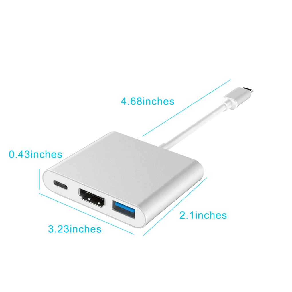 Переходник USBHDMIUSB 3,1Type-C Алюминиевый для Macbook Pro, Samsung, Huawei