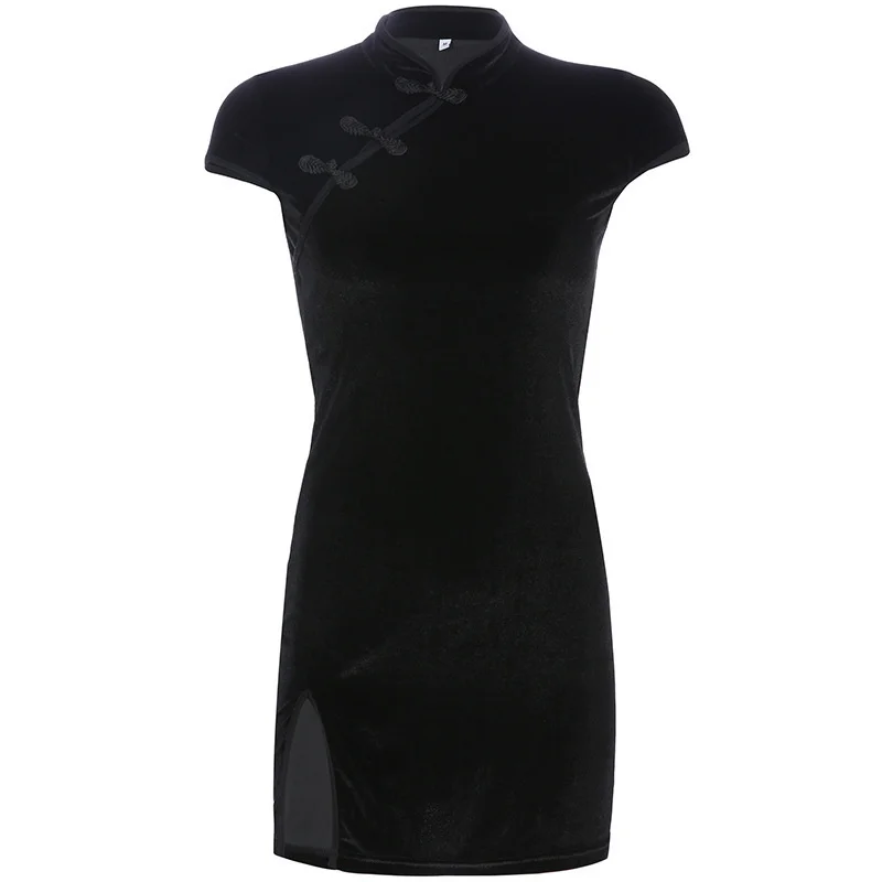 Женское бархатное платье-пряжка платья Ципао, винтажное платье с ко...