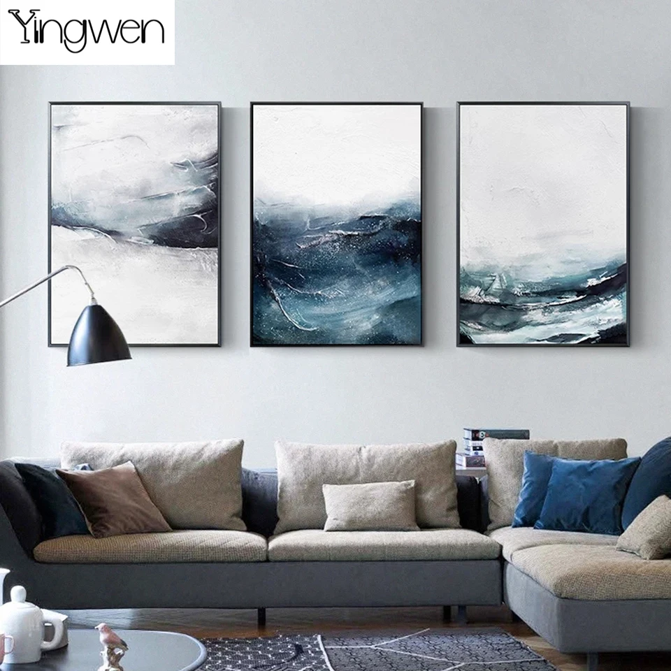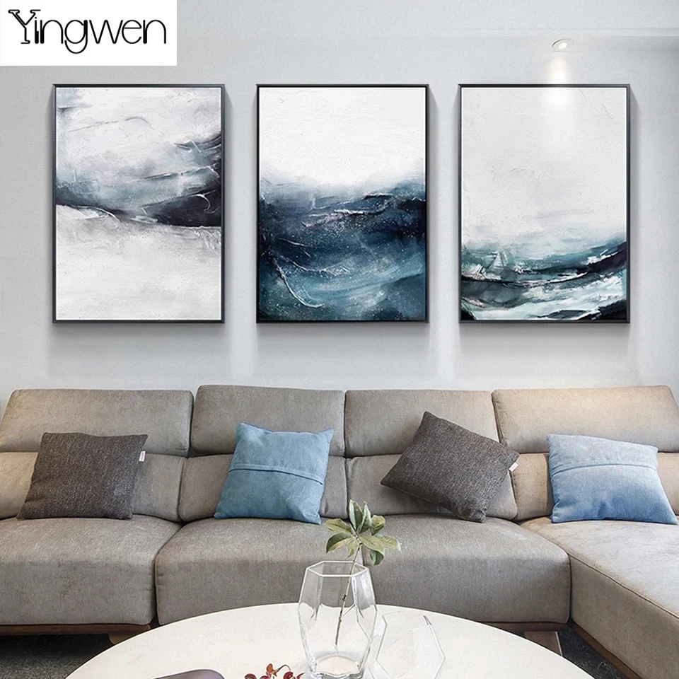 Современная Абстрактная вышивка, алмазная живопись, 3 шт., синяя морская картина, полностью квадратная круглая Алмазная картина, искусство, Триптих, украшение для дома, подарок