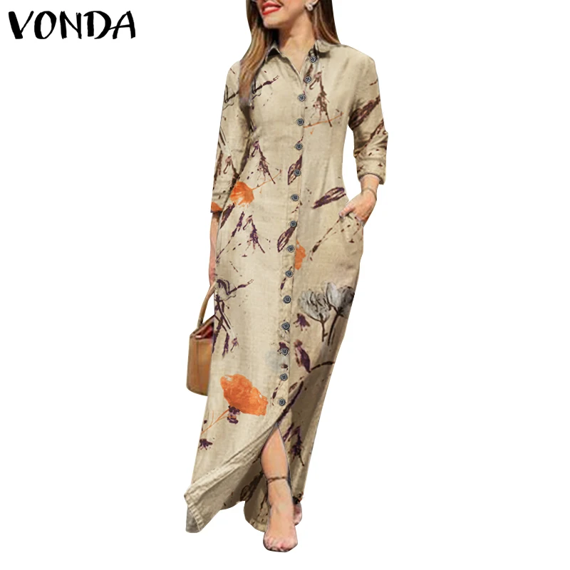 Женское винтажное платье с длинным рукавом, Элегантное Длинное Платье VONDA с отложным воротником и цветочным принтом, длинное платье-халат, повседневные платья 2022