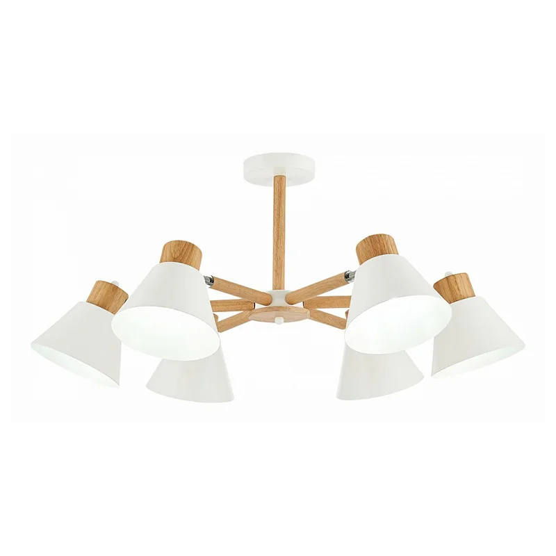 Люстра на штанге от компании EVOLUCE серии SLE103702-06 предназначена для помещений, оформленных в стиле модерн. Изделие имеет следующие размеры: высота - 370мм, диаметр - 735мм. Можно подключить диммер, если установить лампу накаливания. Цвет плафонов и подвесок - белый. Цвет арматуры - белый, дерево. Материал арматуры - металл.