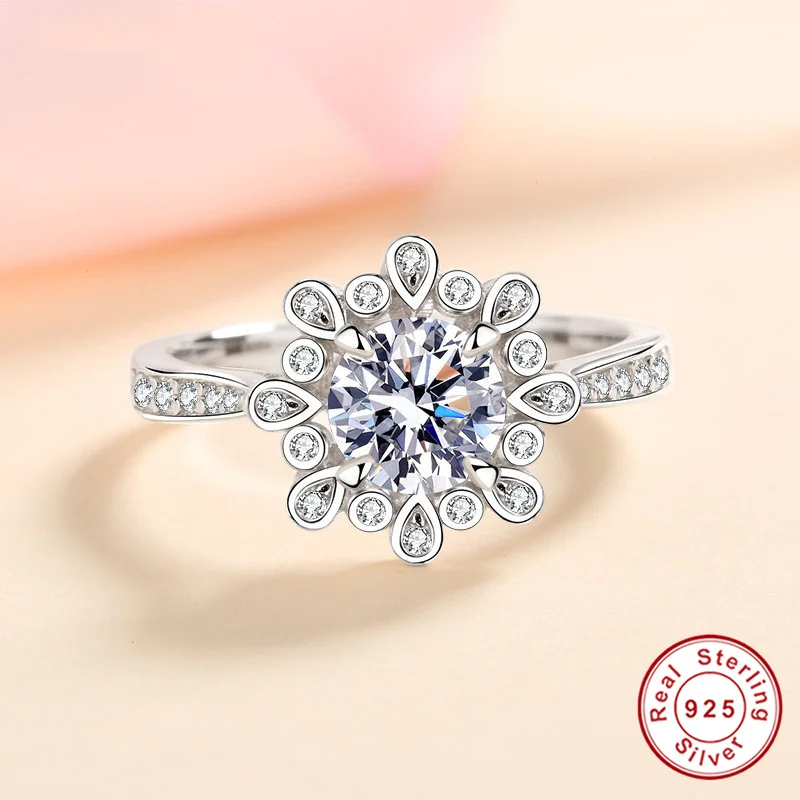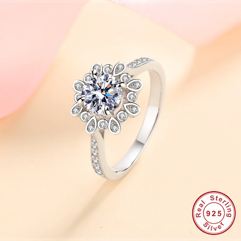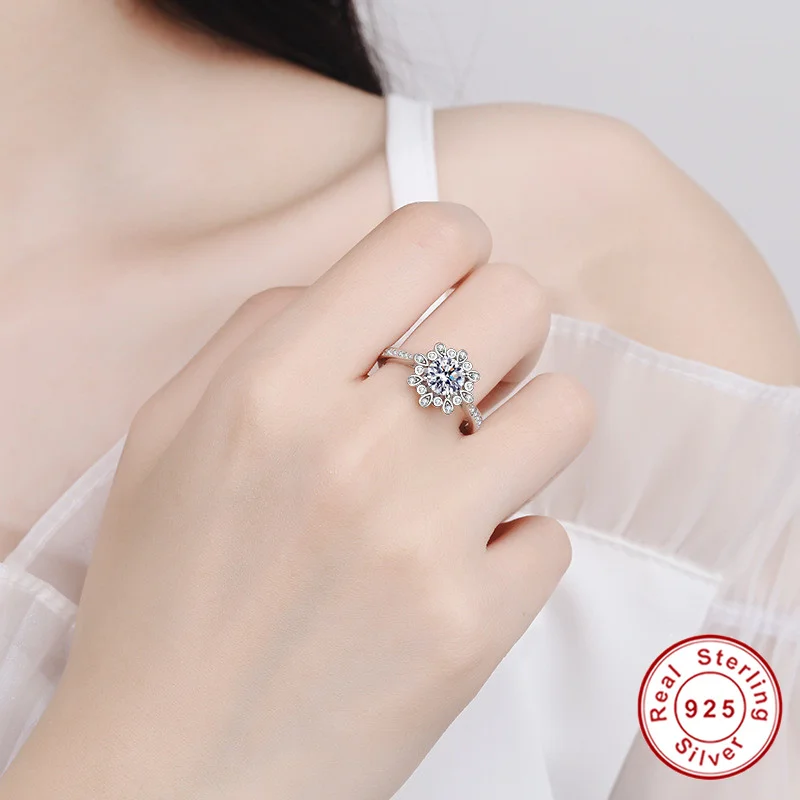 Кольцо женское из серебра 925 пробы, с муассанитом 0,5-2 карата