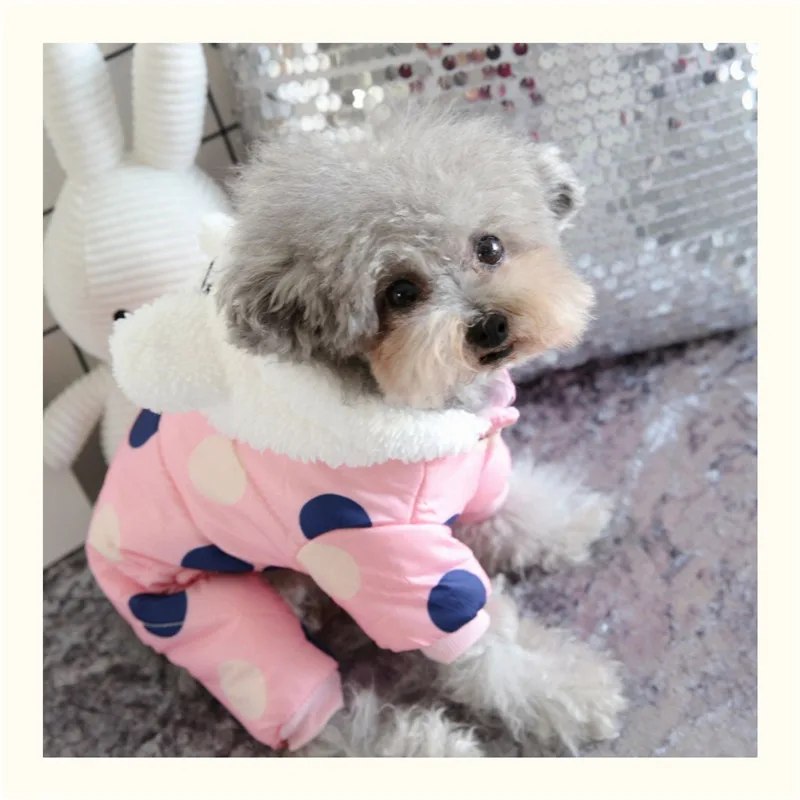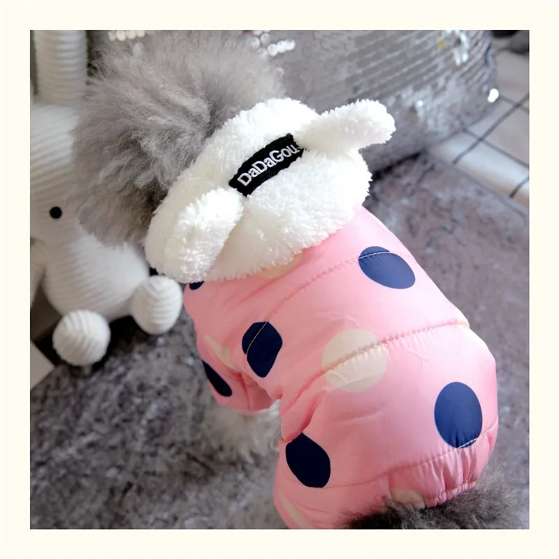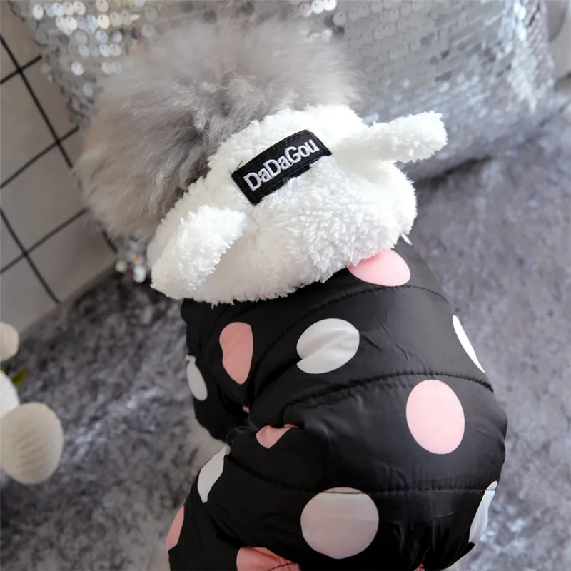 Зимняя одежда для собак, толстовка, пальто в горошек, хлопковое пал...