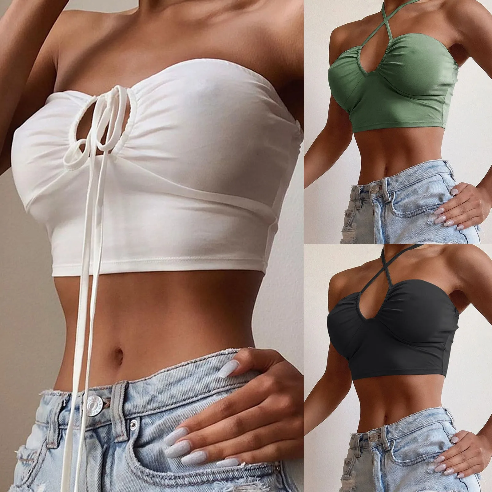 Женский сексуальный однотонный короткий топ с лямкой на шее и топ на бретельках для бега в тренажерном зале женский спортивный хлопковый противоударный антипот