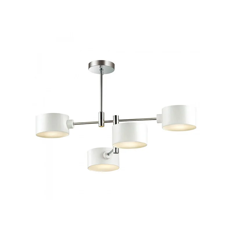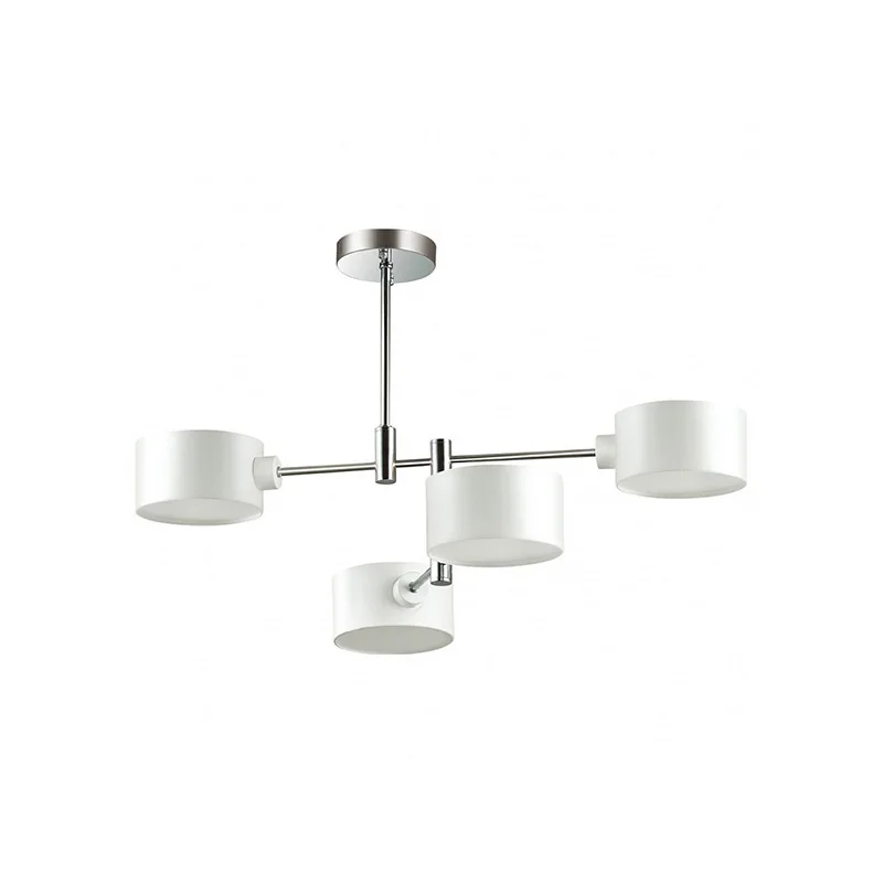 Люстра на штанге от компании Lumion серии 3742/4C предназначена для помещений, оформленных в стиле модерн. Изделие имеет следующие размеры: высота - 430мм, диаметр - 740мм. Можно подключить диммер, если установить лампу накаливания. Цвет плафонов и подвесок - белый. Цвет арматуры - хром. Материал арматуры - металл.