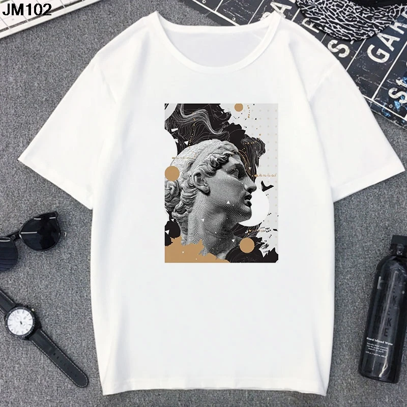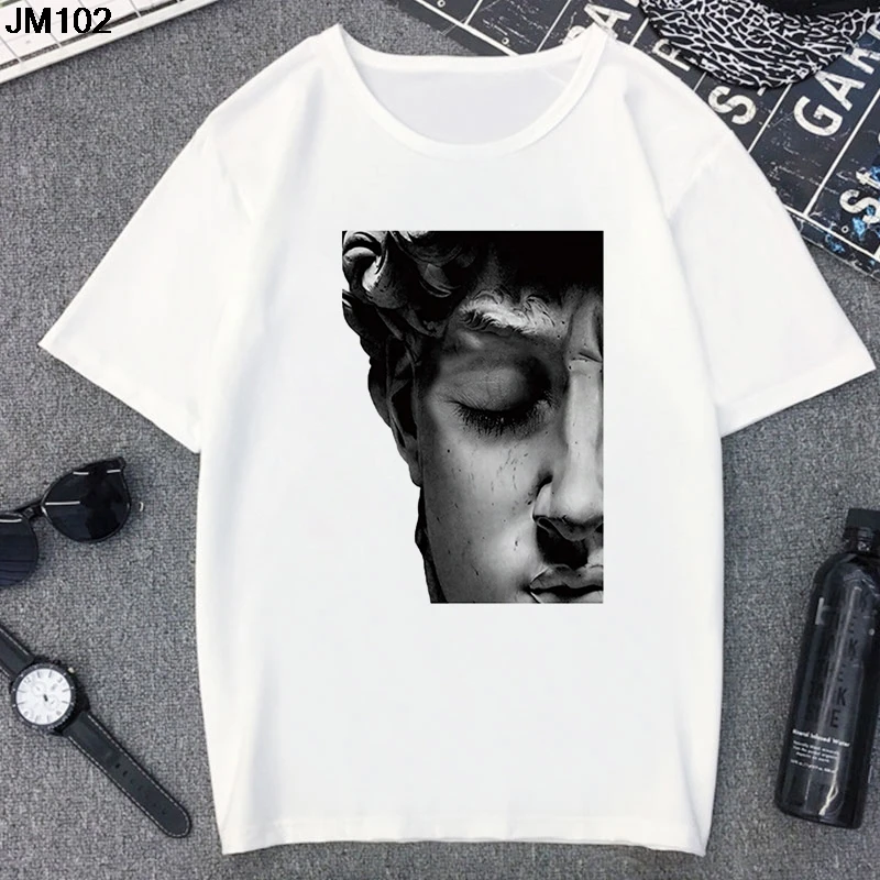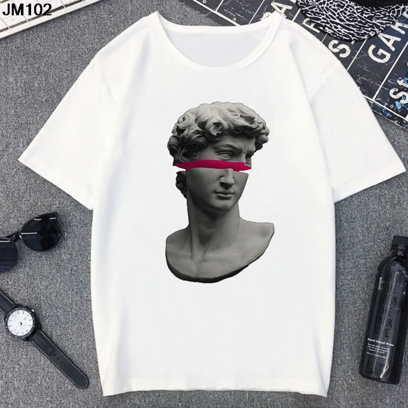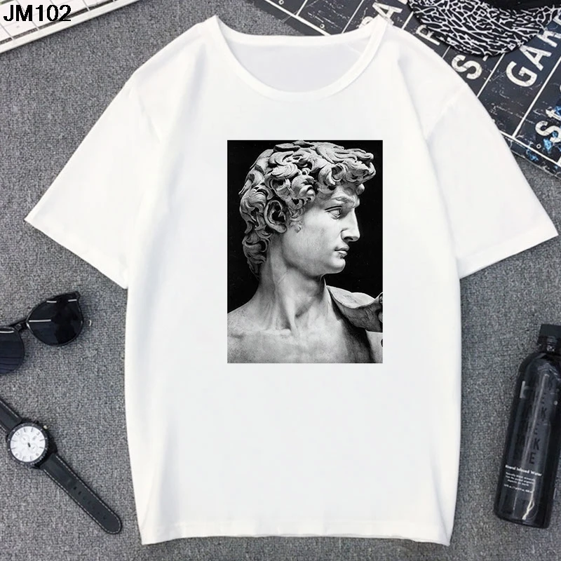 Футболка женская с коротким рукавом, топ с принтом Микеланджело Давида, в стиле Харадзюку, модная повседневная рубашка в стиле 90-х, белая, на лето