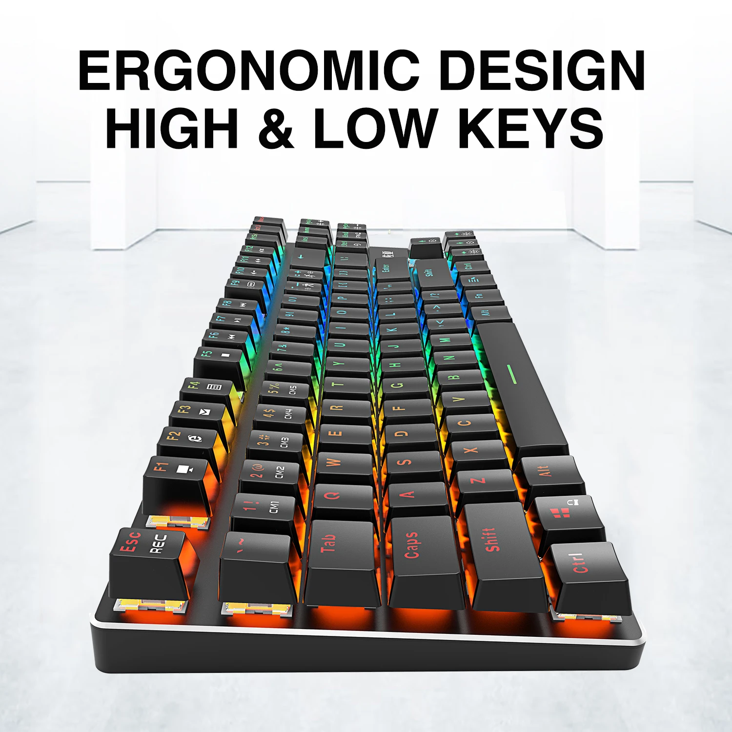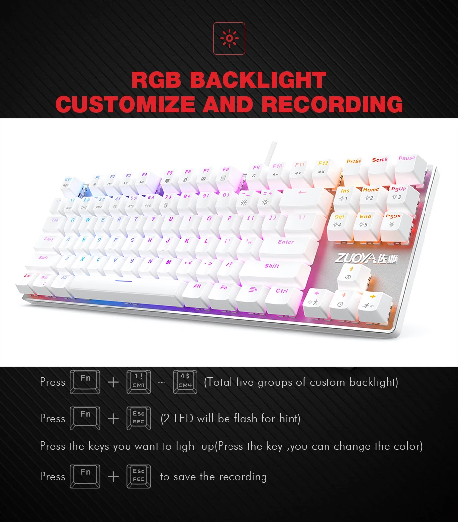 Игровая механическая клавиатура ZUOYA RGB, проводная USB клавиатура с красным переключателем, 87 клавиш, защита от фиктивных нажатий, для компьютера и ноутбука