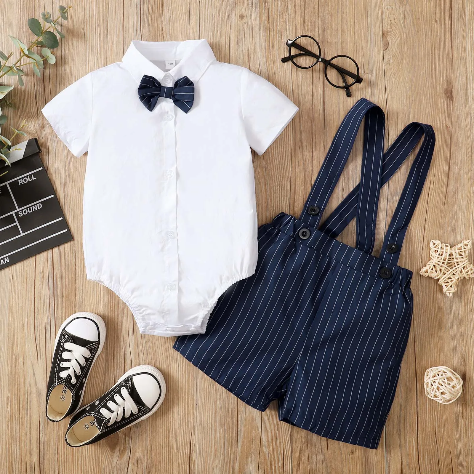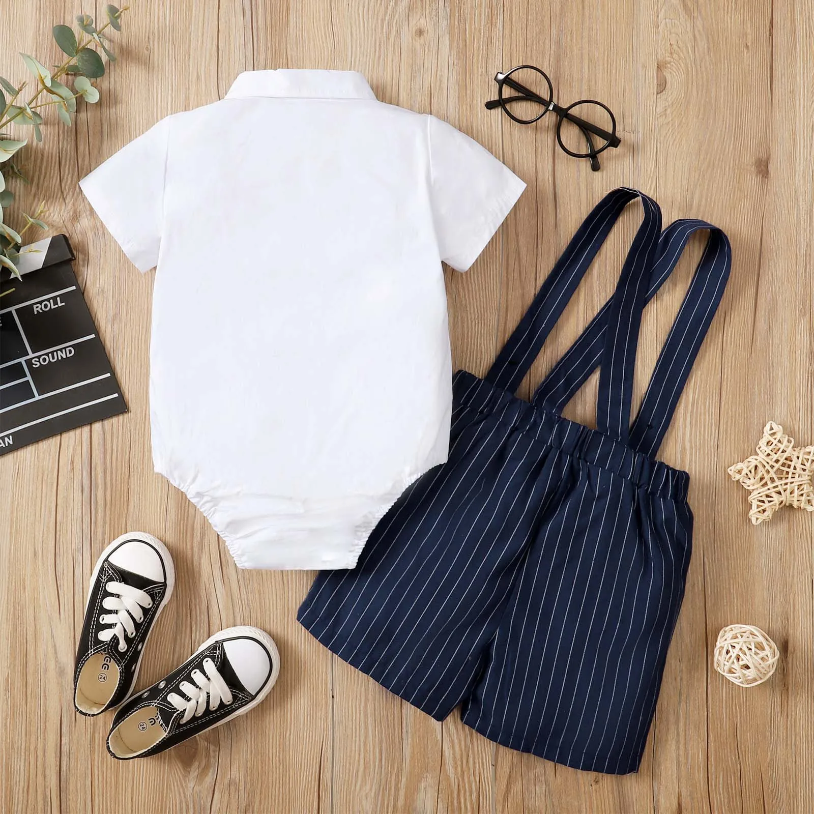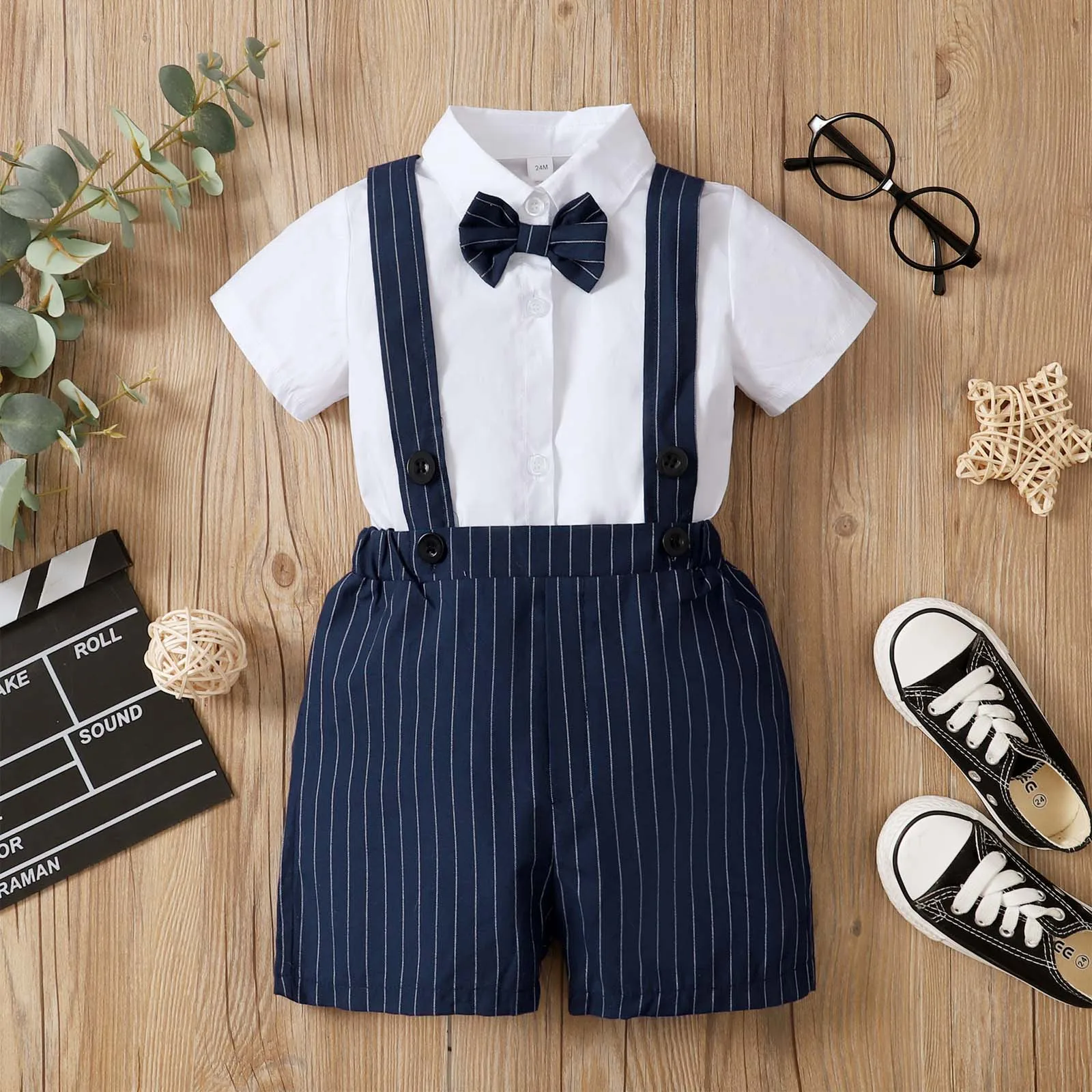 Летняя одежда для маленьких мальчиков в джентльменском стиле костюмы для дня рождения одежда для малышей Летние футболки для мальчиков с галстуком-бабочкой в джентльменском стиле для мальчиков комбинезоны в полоску костюм с короткими рукавами, комплект одежды