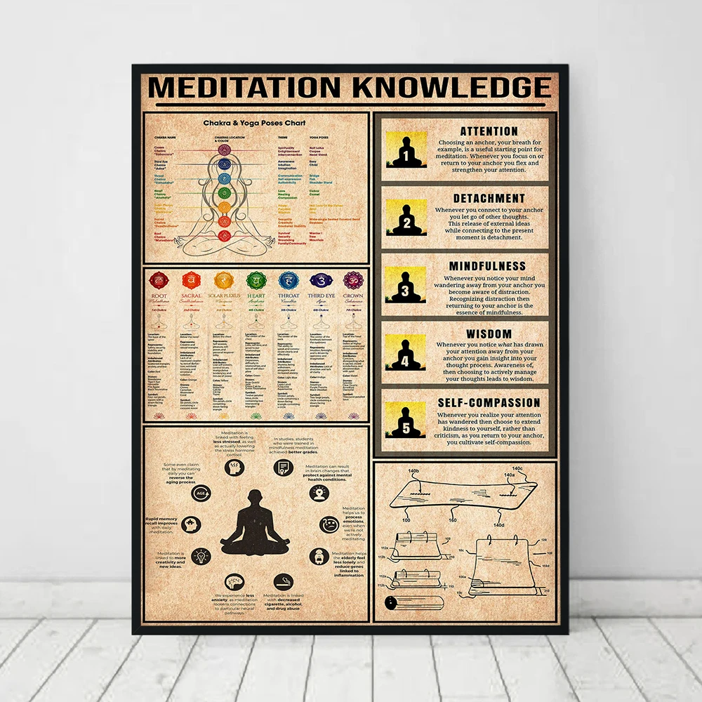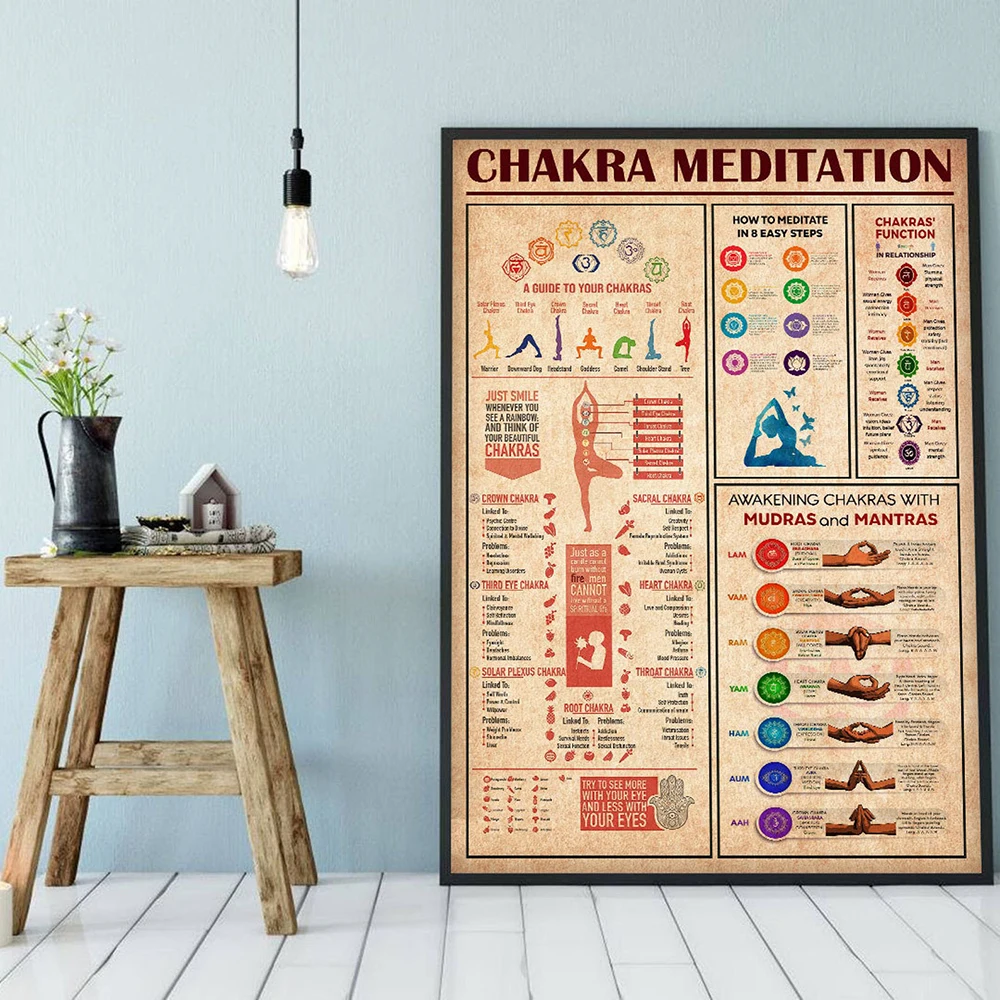 Плакат для йоги, знания о медитации, чакры и позы для йоги, художественные принты, картины на холсте, картины для йоги, студийное украшение для дома