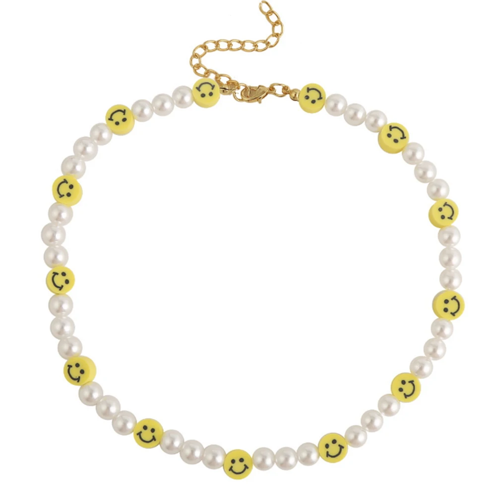 Ожерелье со смайликом, чокер с бусинами, нестандартное жемчужное ожерелье, Милый Летний воротник Y2K, жемчужное ожерелье для девочек-подростков и женщин