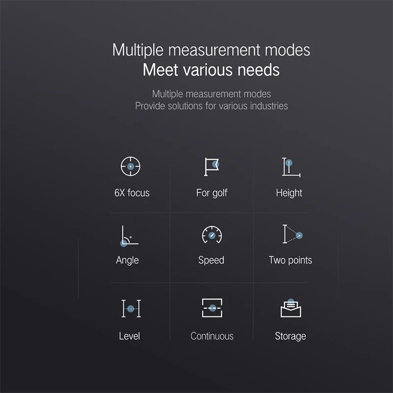 Подходит для измерения высоты, расстояния, угла и скорости. Различные режимы можно переключать нажатием кнопки