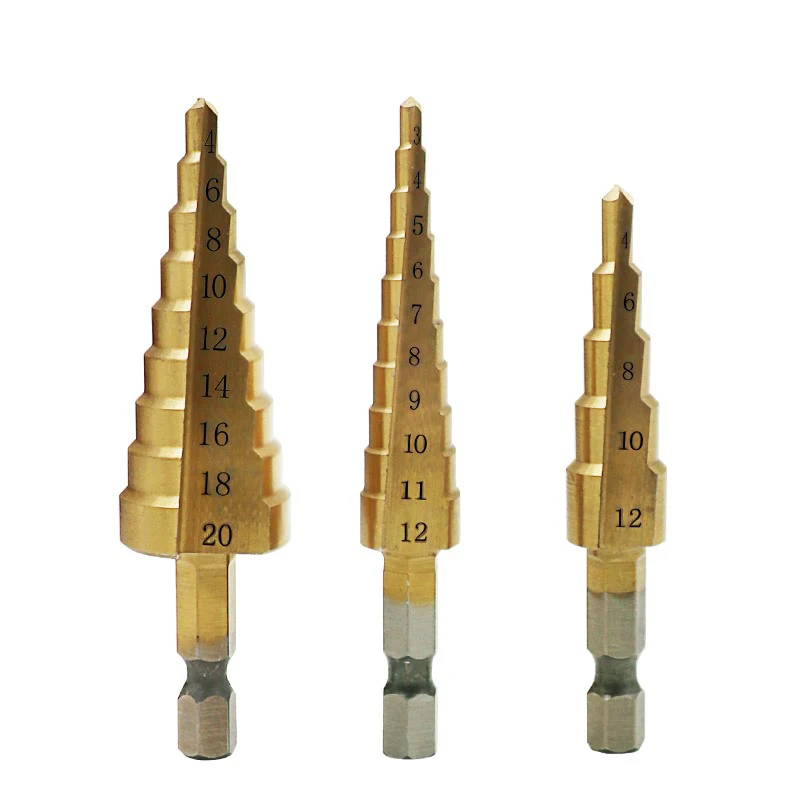 Титановые ступенчатые сверла 3 шт.компл., быстрорежущие электроинструменты, высокоскоростной стальной резак для сверления дерева, металла, 3-12 мм, 4-12 мм, 4-20 мм