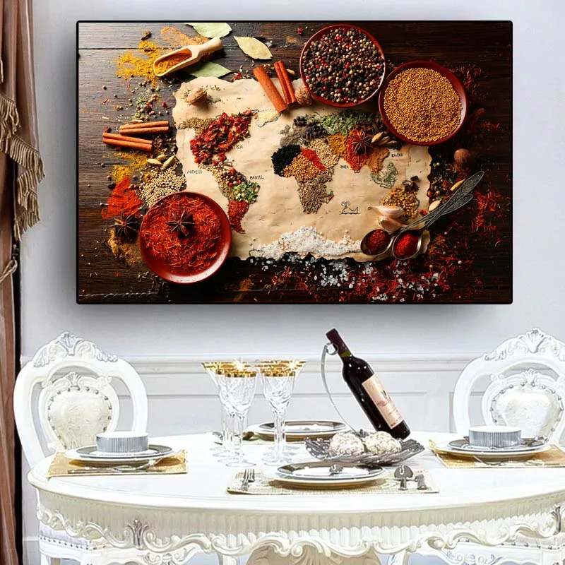 Картина на холсте с изображением овощей, специй, злаков, картины для ресторана, домашний декор, настенное искусство, принты в скандинавском стиле, украшение для кухни