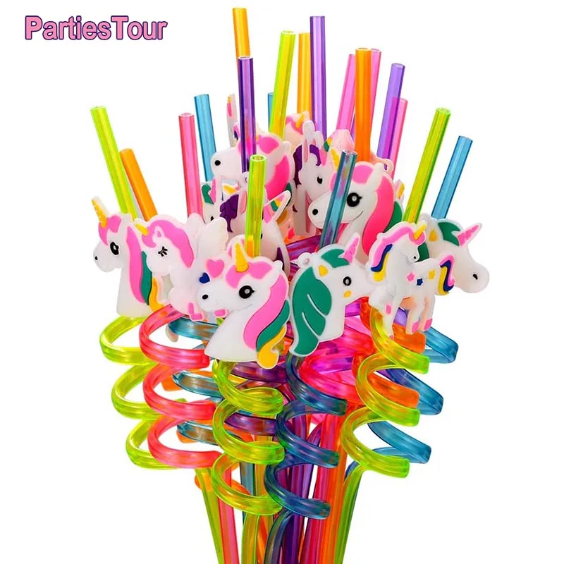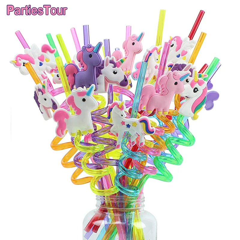 8 шт. 25 см Многоразовые Единорог соломки для дней рождения Единорог тема Пластик питьевой соломы для детей Baby Shower День рождения расходные материалы