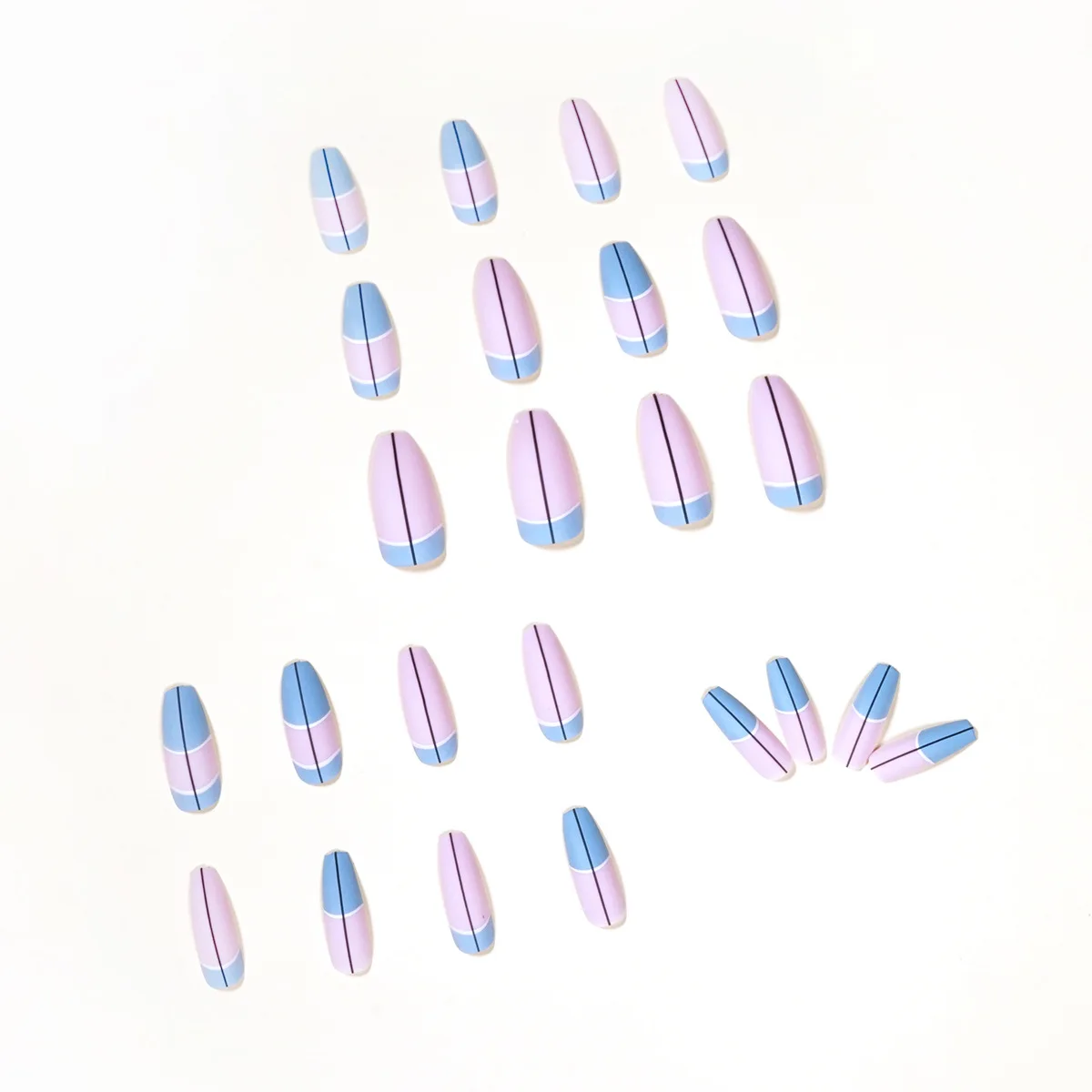 Съемные Синие французские длинные гвозди, 24 шт., накладные гвозди балерины, гроб, накладные гвозди, полное покрытие, акриловые накладные гвозди с клеем