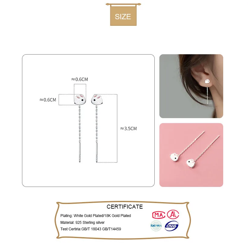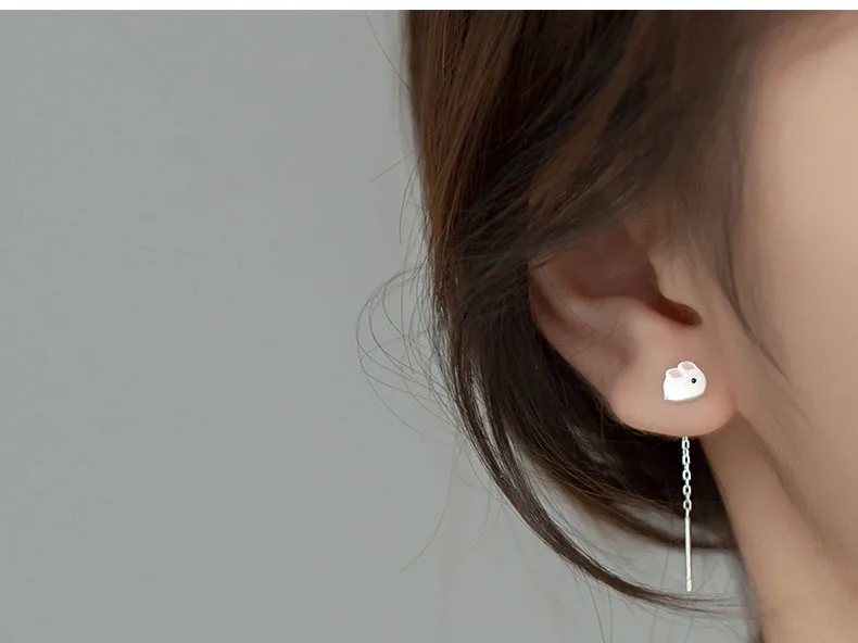 TrustDavis минималистские серьги-гвоздики из стерлингового серебра 925 пробы с милым кроликом на цепочке для женщин креативные модные серебряные ювелирные изделия DB1345