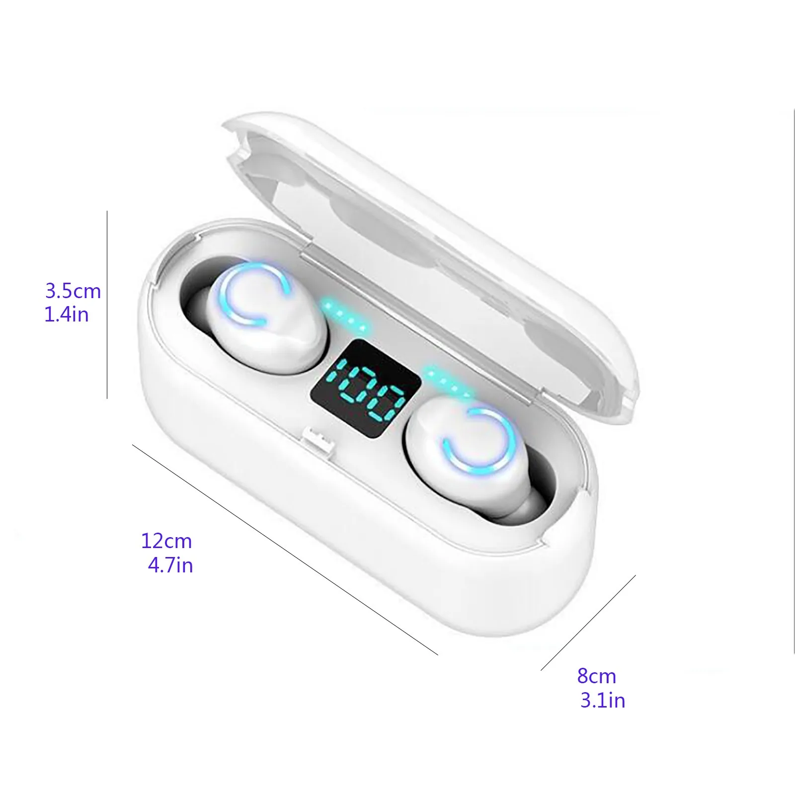 ♪♫【 Индивидуальный дисплей питания наушников и зарядный чехол 】: L/R Bluetooth наушники Светодиодный дисплей, отделенный батареей, отображает, сколько батареи осталось В зарядном основании, когда вставляете в чехол, вы можете знать, когда это лучше Время зарядки. ♪♫• Время работы до 90 часов, зарядка по вашему желанию: встроенный аккумулятор 2000 мА · ч Чехол для зарядки аккумулятора, беспроводные наушники могут работать в течение 4 часов при одной зарядке, Портативная зарядная коробка может обеспечить воспроизведение в течение 90 часов. Их можно заряжать Автоматически после того, как наушники вставлены в зарядный чехол. Вы можете выйти Весело, не беспокоясь о нехватке батареи, ваши потребности удовлетворяются с самого начала Дня до конца. ♪♫【Новейший Bluetooth 5,1 technВ медицине,O-NE-STEPPairing】: Убедитесь, что вы великолепны Опыт быстрой, стабильной и эффективной передачи. Снята влево и вправо Bluetooth-наушники из зарядного устройства, затем автоматически появляется «F9» На вашем смартфоне. Не беспокойтесь о звонках или прослушивании музыки Выпадение аудио. ♪♫【Плотно прилегает 】: эргономичный дизайн, который удобно сидит в ушах для активного отдыха Стиль жизни, F9T-WSСтерео Наушники поставляются с тремя регулируемыми размерами ушной чашки Прямо из коробки, вы можете сфокусироваться на достижении новых высот в ваших тренировках. ♪♫Водонепроницаемость IPX6: настоящие беспроводные наушники против повреждений от пота или Дождь. Они не смогут наслаждаться спортом, музыкой и звонками. Идеально подходит для Фитнес-путешествия и т. Д. Примечание: зарядный чехол не является водонепроницаемым. 24 месяца Гарантия, если вы не удовлетворены своей покупкой по каким-либо причинам, пожалуйста Не стесняйтесь обращаться к нам в любое время. Посылка включает: 1 пара bluetooth-гарнитуры 1 * зарядное устройство 1 * USB кабель