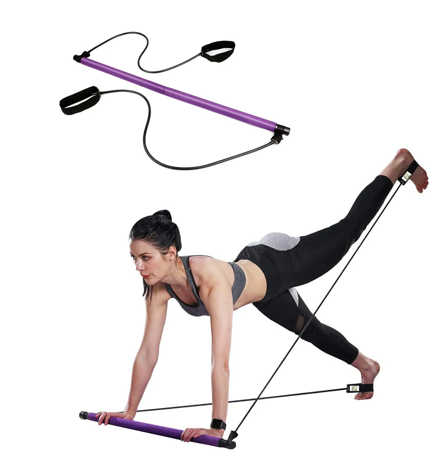 Йога Пилатес бар с резистивными лентами | Портативная мышечная Тонизирующая и формирующая тело палка для упражнения Набор для дома тренажерный зал тренировки | Все в одном оборудование для вашего полного тела фитнес