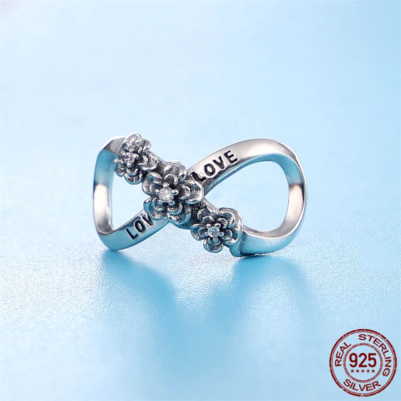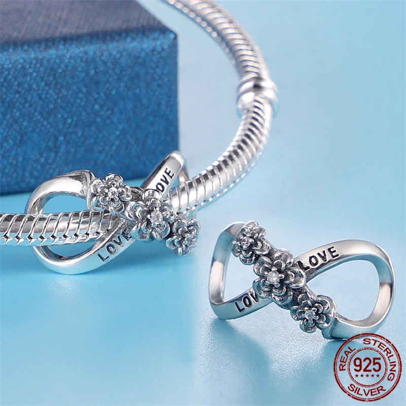 Фигурка 8 с шармами в виде цветов и бусинами, подходит для оригинального браслета 3 мм и браслета для женщин, бижутерия на день рождения, подарок, серебристый цвет