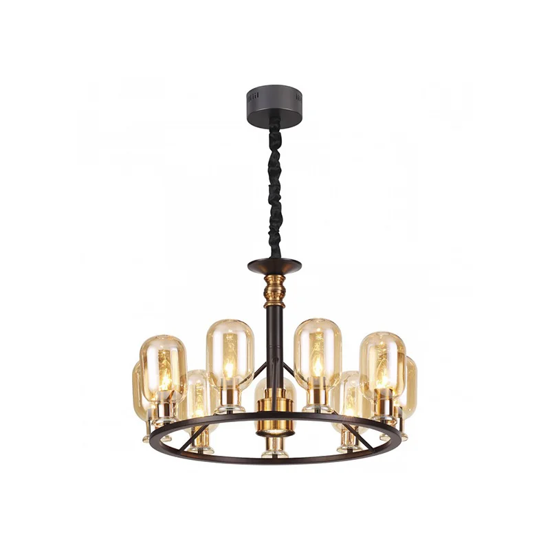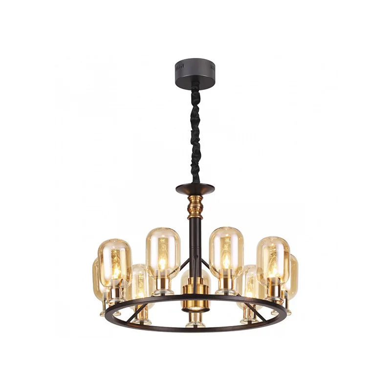 Подвесная люстра от компании Odeon Light серии 4700/9 предназначен для помещений, оформленных в стиле лофт. Изделие имеет следующие размеры: высота - 389мм, диаметр - 626мм. Можно подключить диммер, если установить лампу накаливания. Цвет плафонов и подвесок - янтарный. Цвет арматуры - черный. Материал арматуры - металл.