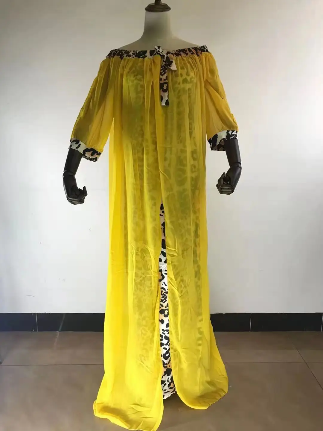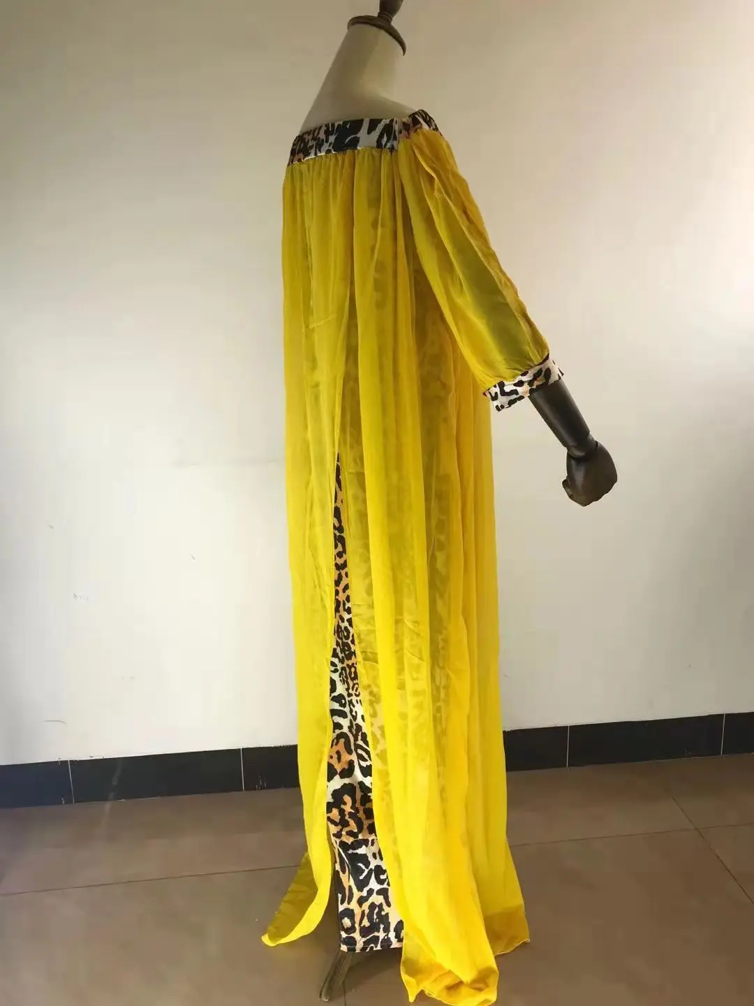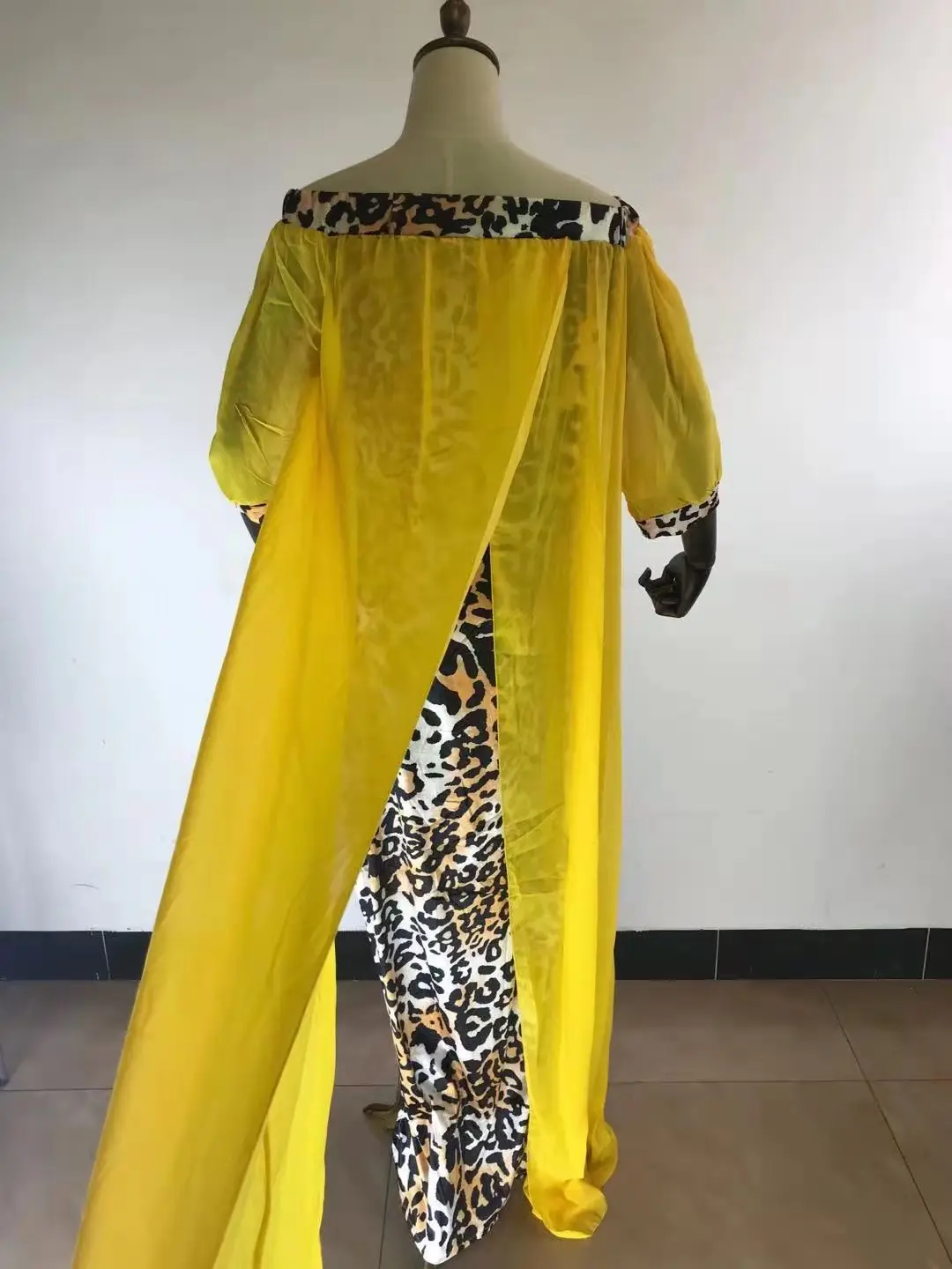 Африканское женское платье с леопардовым принтом, шифоновые длинные...