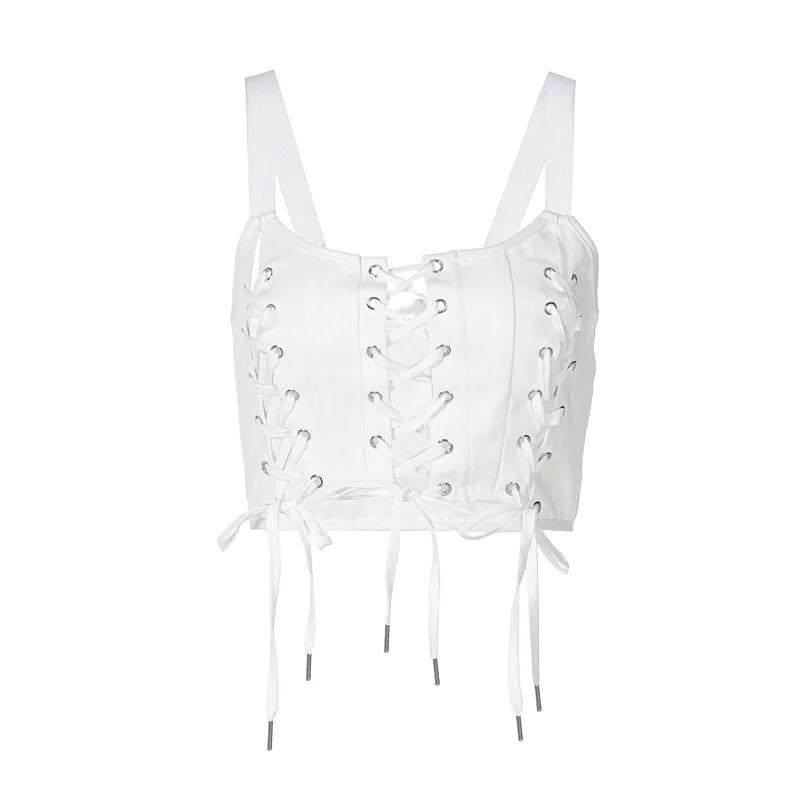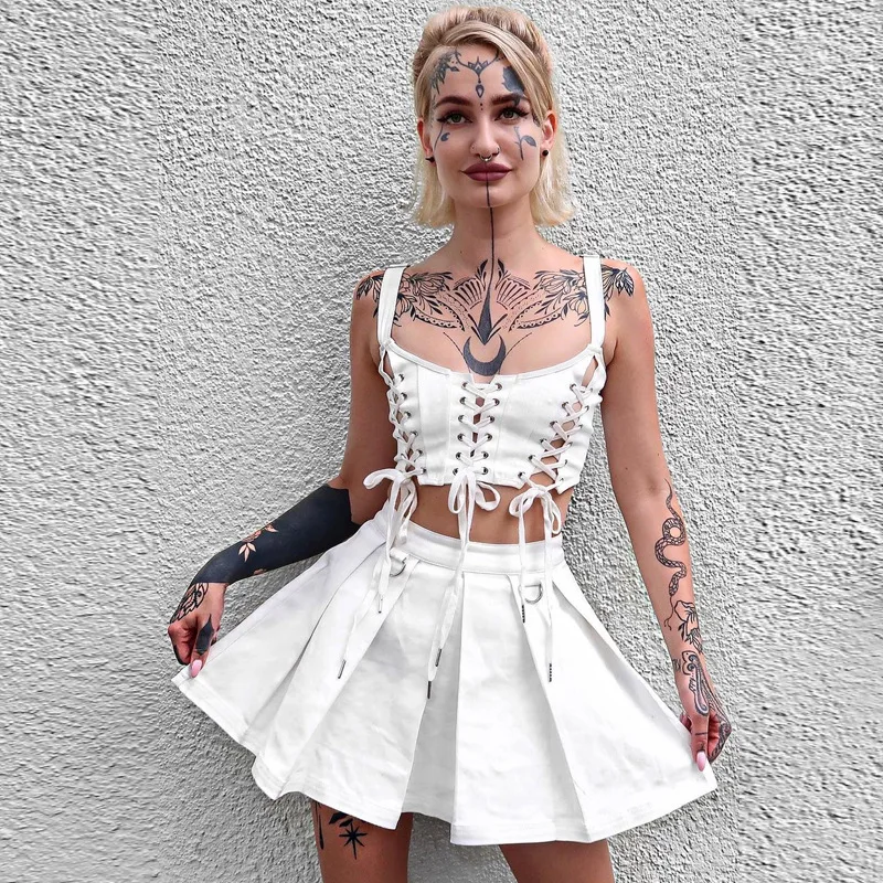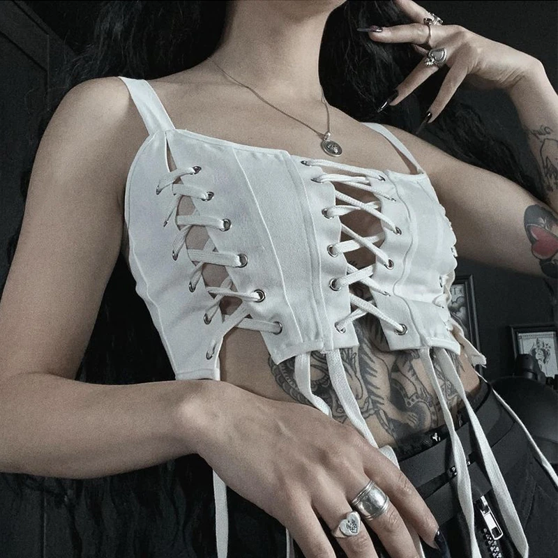 AltGirl торгового центра в готическом стиле сексуальное Белое платье без рукавов с Для женщин Harajuku уличный темно в готическом стиле, с выемкой, утягивающий корсет Топы эмо Alt Y2k 90s камзол