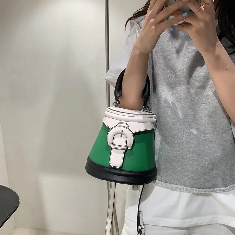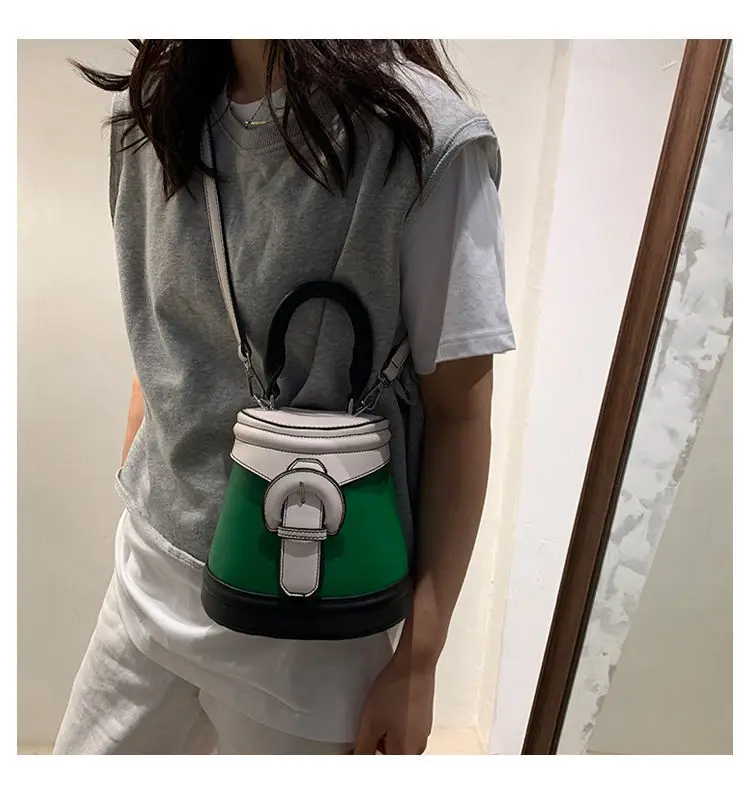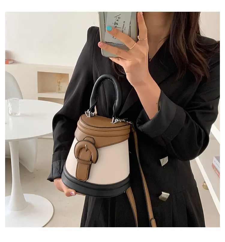 Новинка 2021, женские сумки через плечо в форме бочонка в стиле пэчворк, модные сумки через плечо из искусственной кожи, женские сумки от известного дизайнера