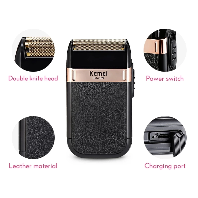 Перезаряжаемый мужской бритвенный прибор Kemei с двумя лезвиями, мо...