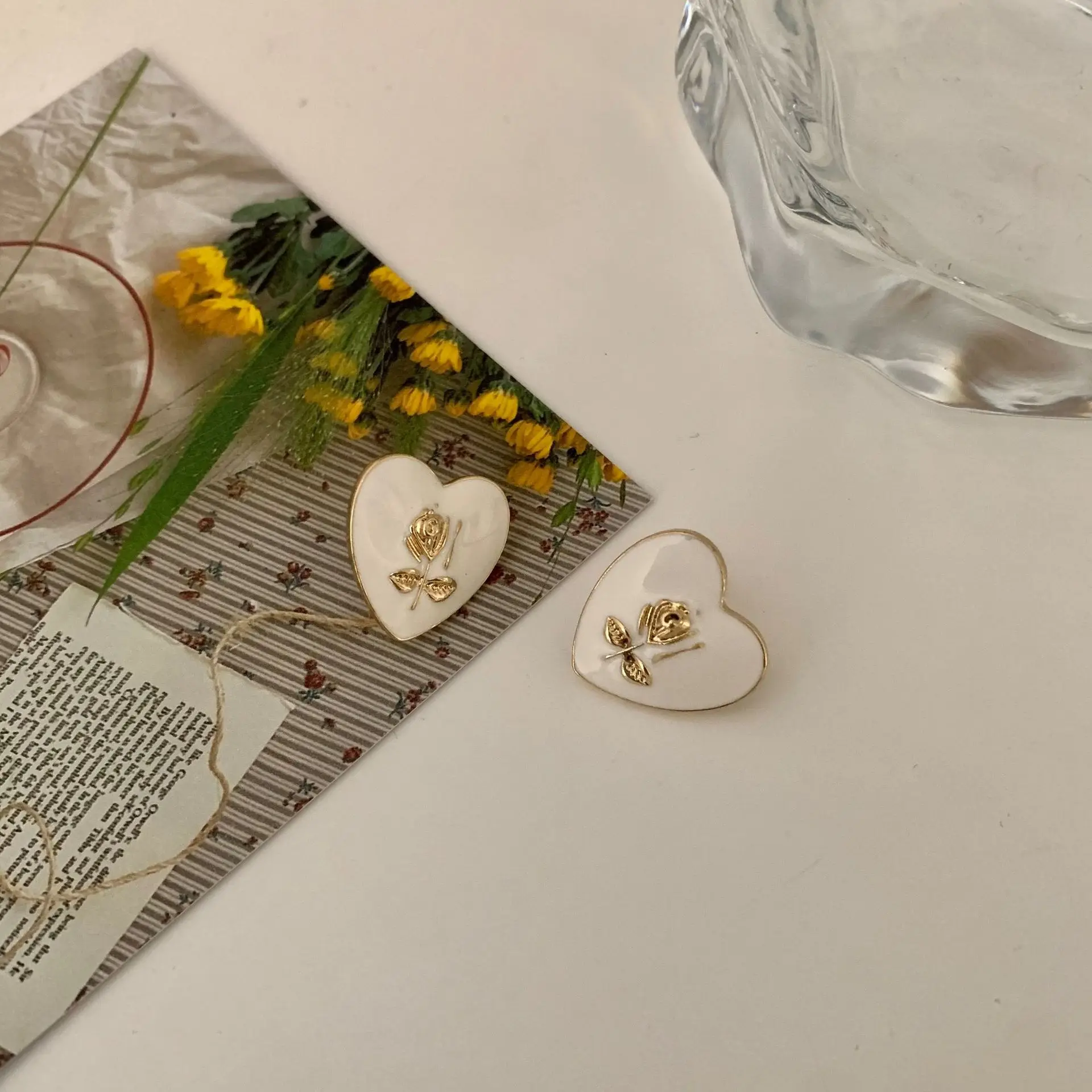 2021 ретро розы любовь стиль Гонконг серьги красный бежевый в виде капель масла женские украшения в японском стиле
