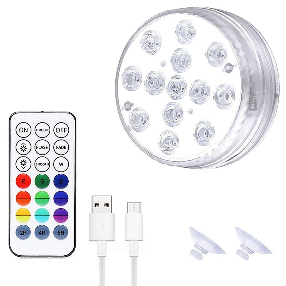 Погружной светильник с USB-зарядкой для бассейна, светодиодный ночсветильник RGB с присоской, уличная садовая подводная лампа с радиоуправлением