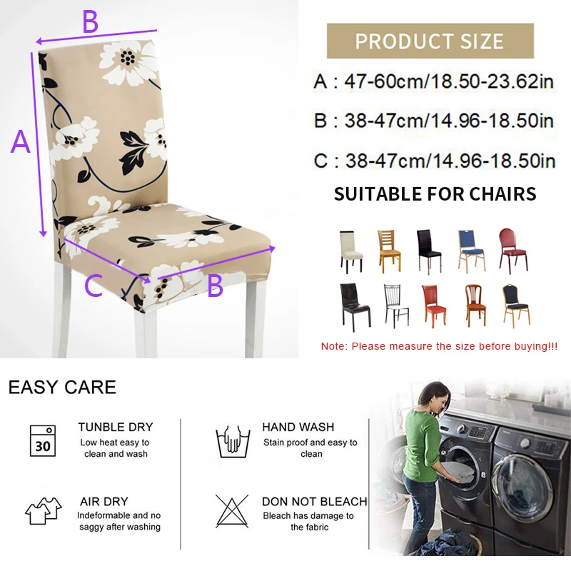 Чехол на стул с цветочным принтом, эластичный чехол из спандекса для столовой, кухни, дома, офиса, банкета, моющийся протектор