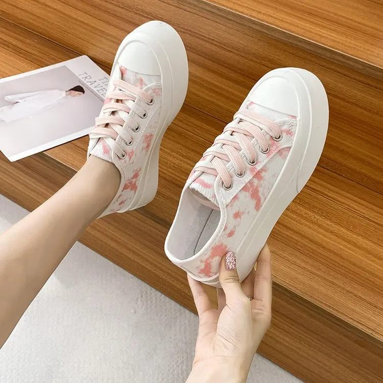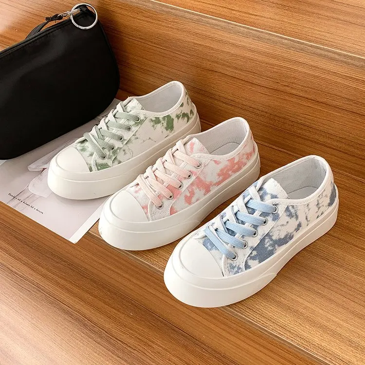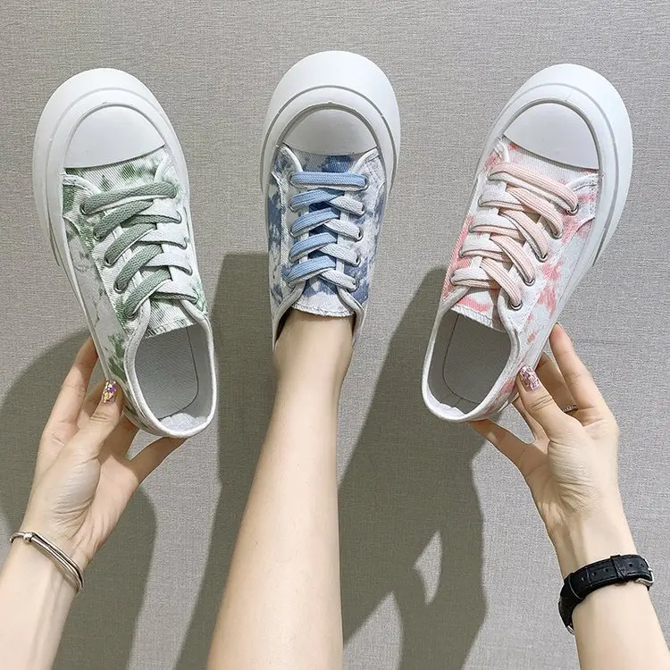 Новинка лета 2021, женские тонкие однотонные туфли, подходящие ко всему холщовые повседневные кроссовки, модная женская обувь на толстой подошве с принтом и большим носком