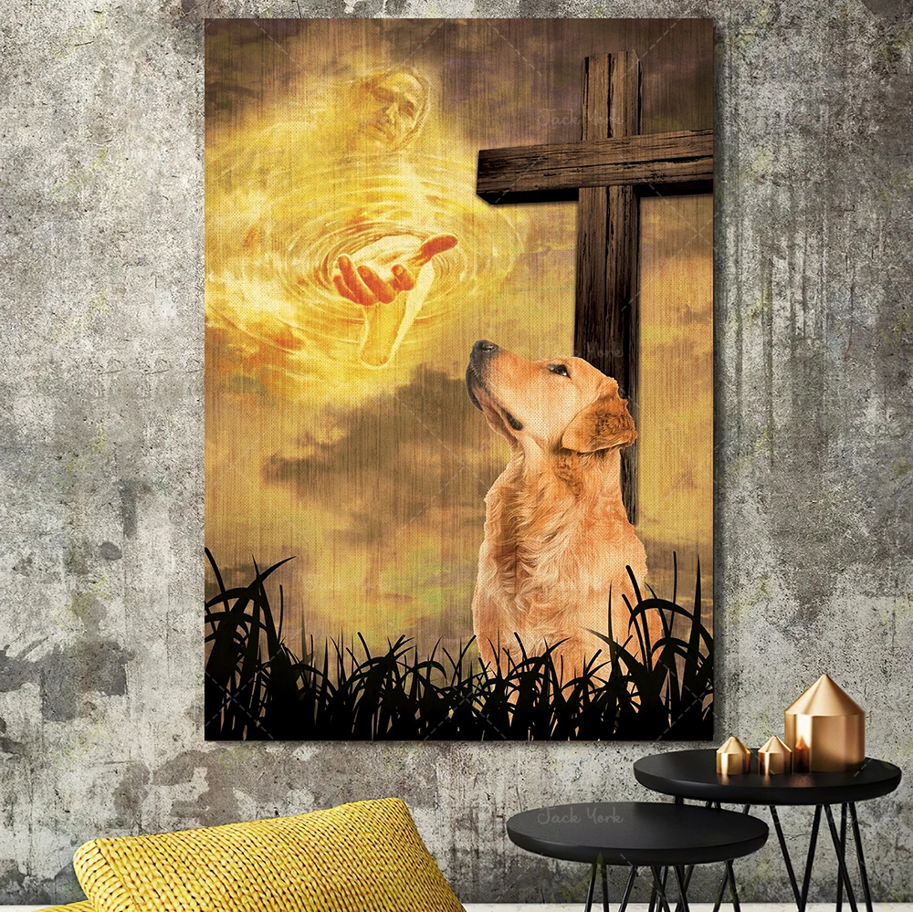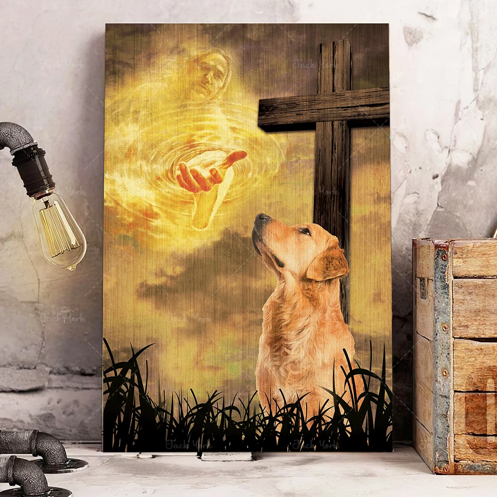 Холст с изображением золотистого ретривера на коленях перед Богом