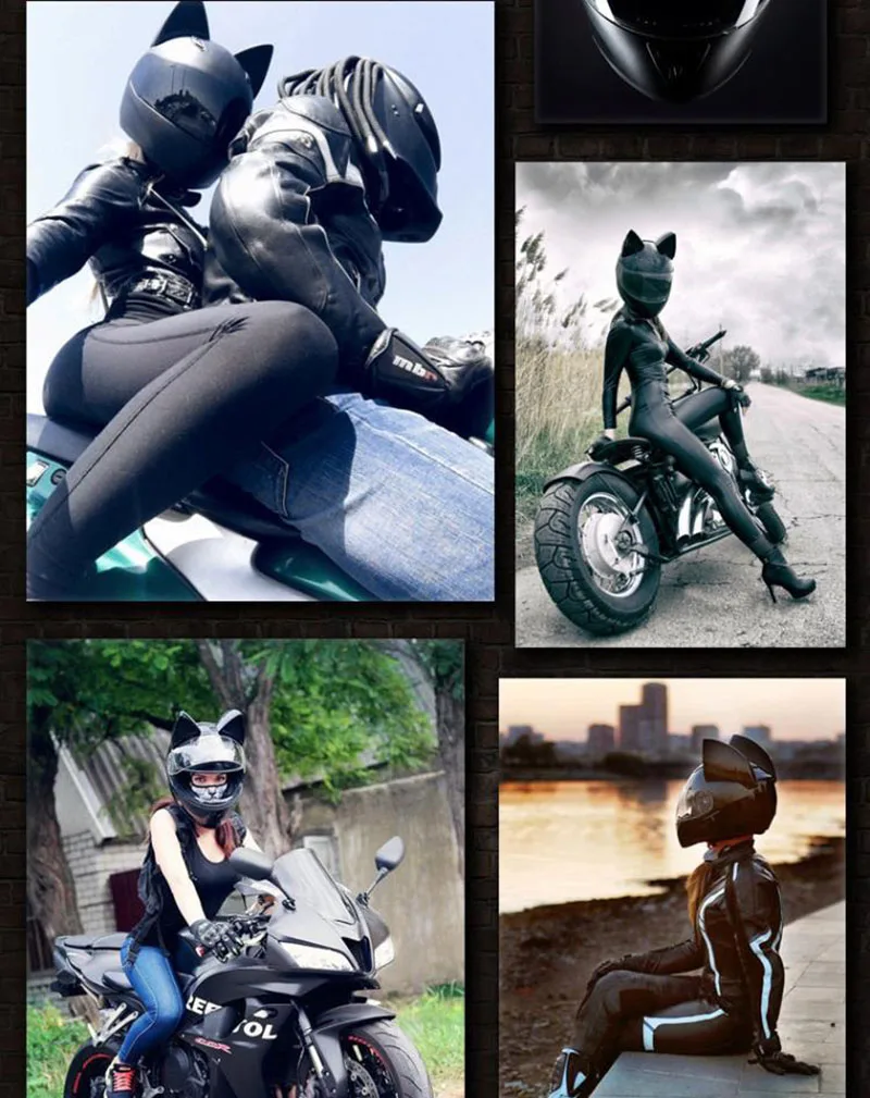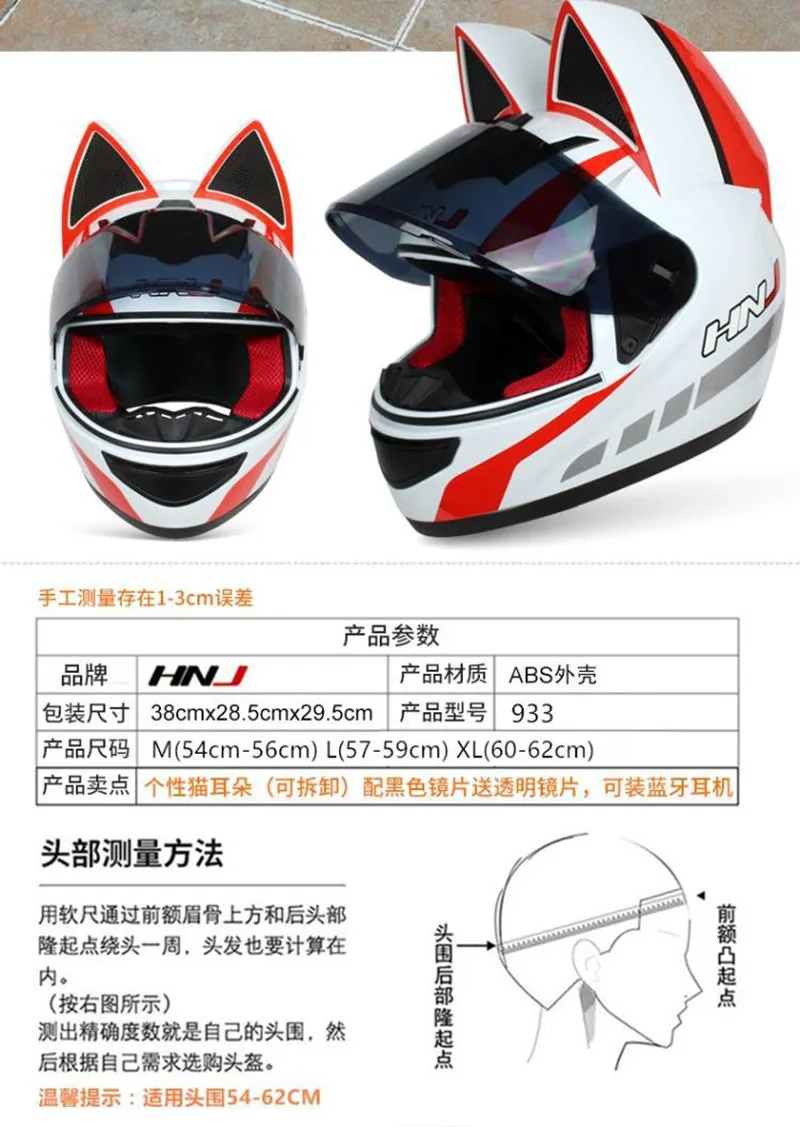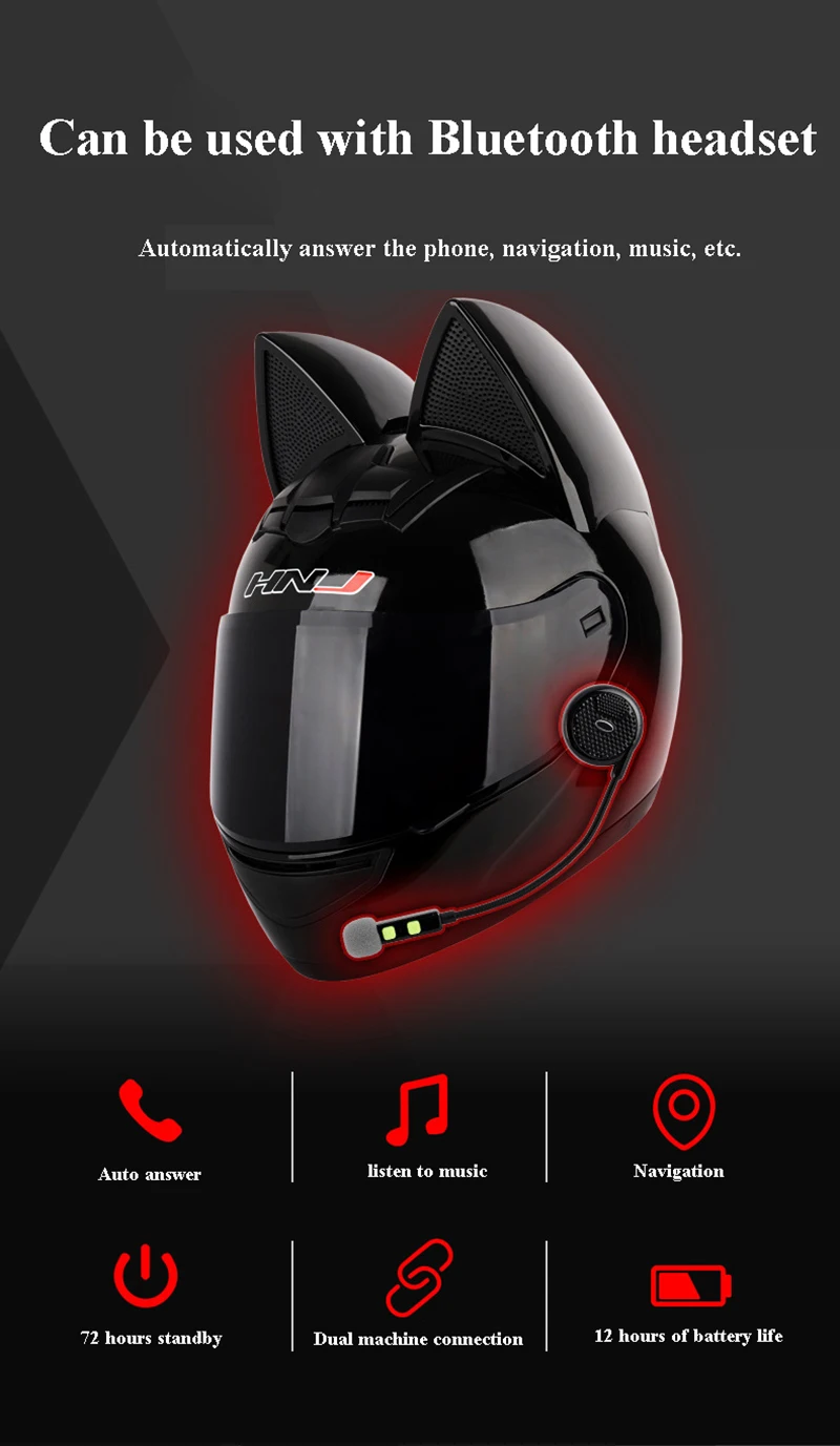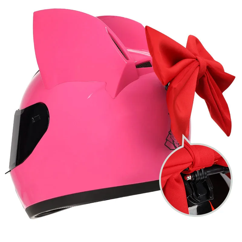 Шлем мотоциклетный женский со съемными кошачьими ушками, обтекаемый, дышащий, на все лицо