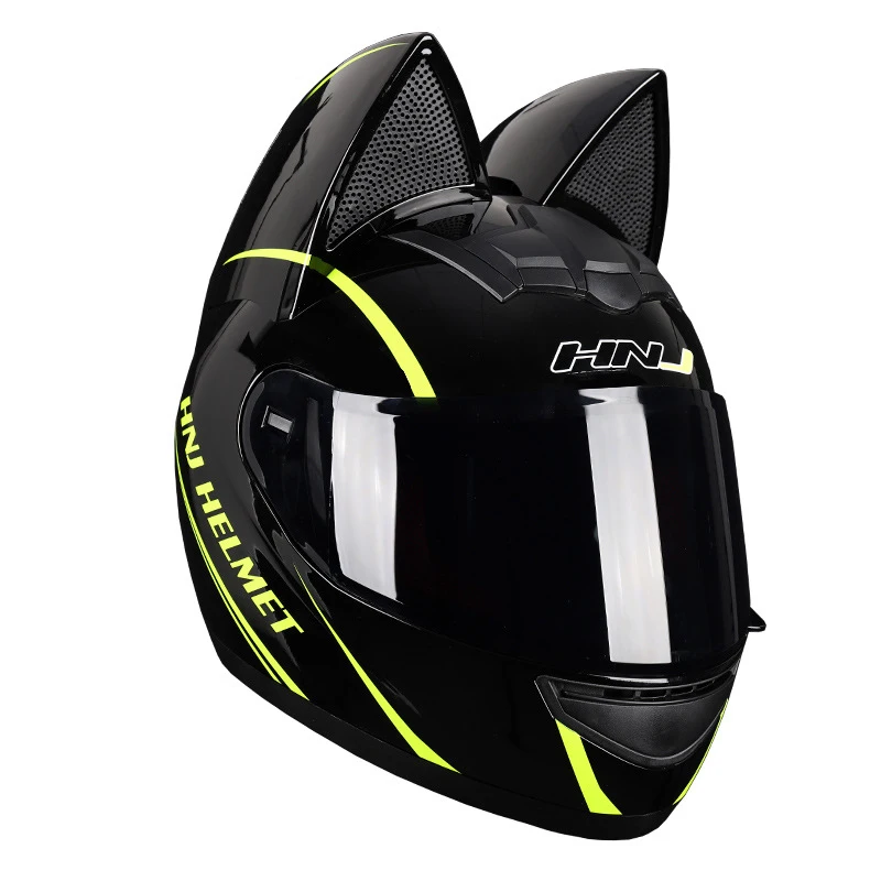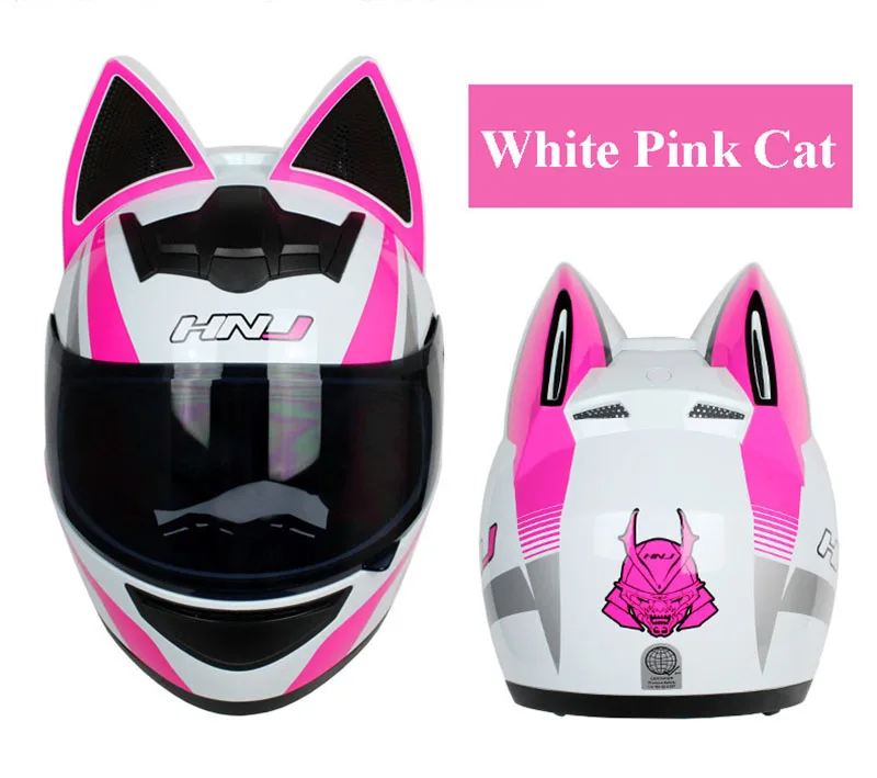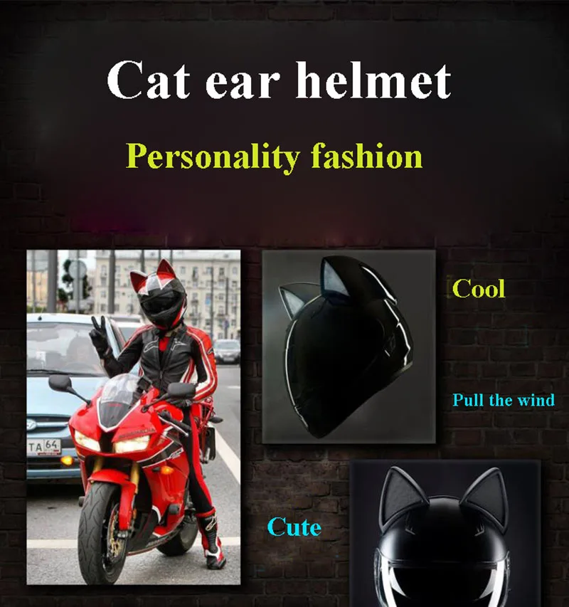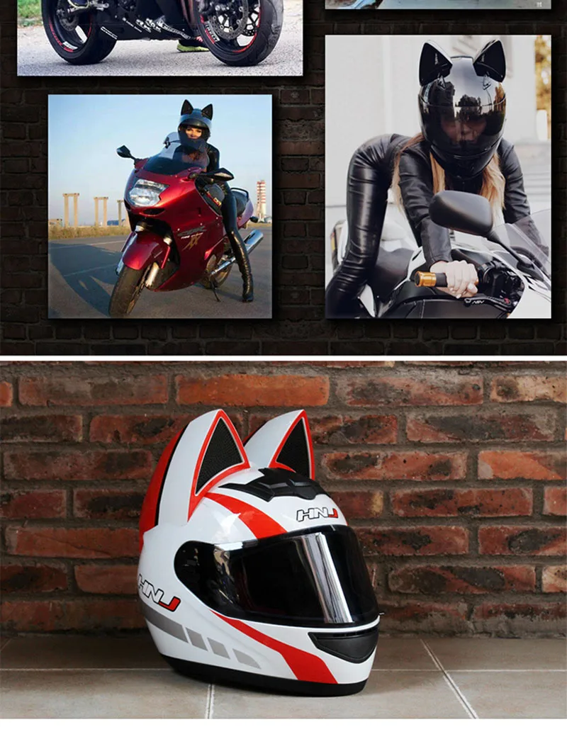 Женский мотоциклетный шлем с полным лицевым покрытием, мотоциклетный дышащий шлем для мотокросса со съемными кошачьими ушками, обтекаемый шлем для женщин