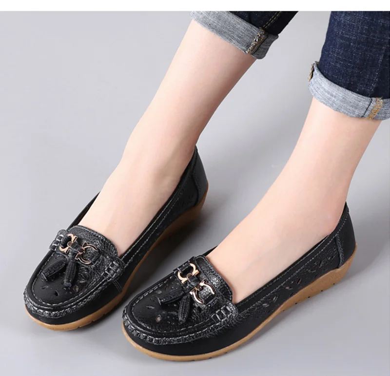 Женские Дышащие лоферы из коровьей кожи, на плоской подошве, без за...