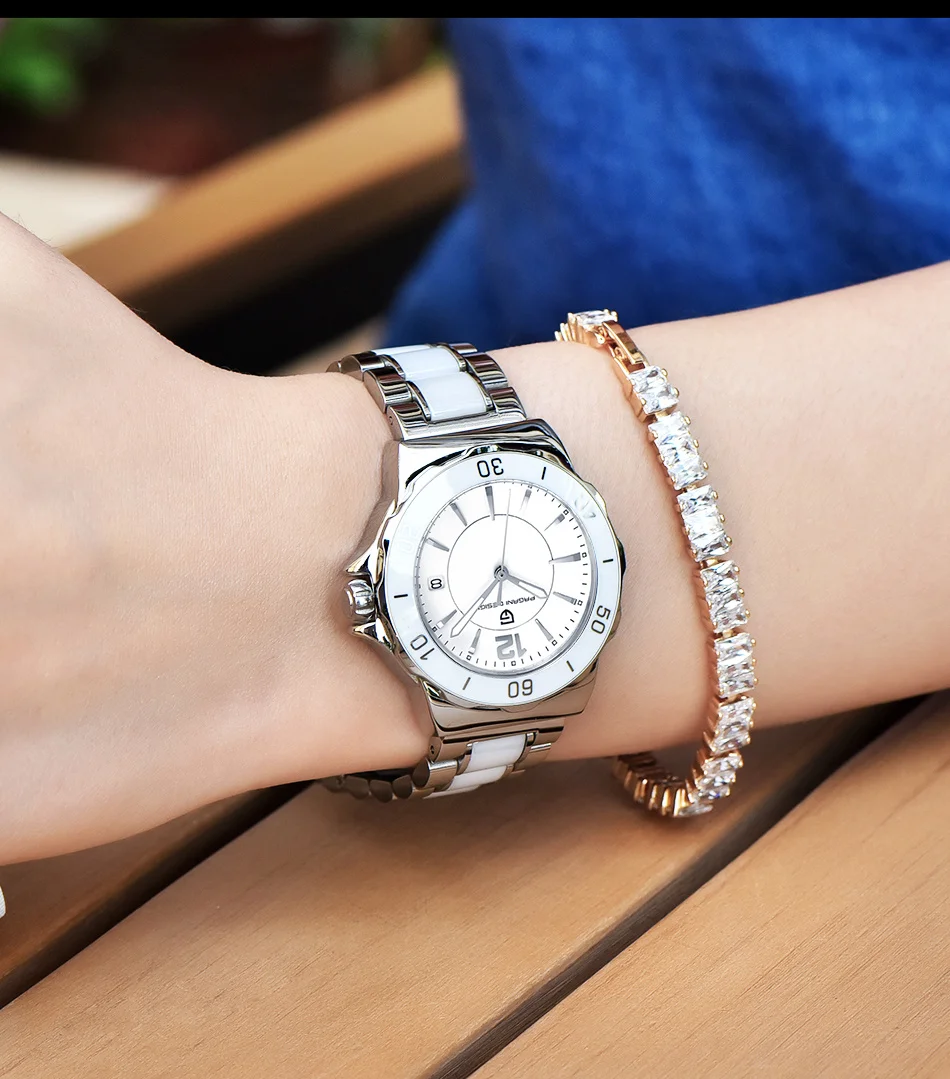 Часы женские кварцевые с керамическим ремешком, в деловом стиле