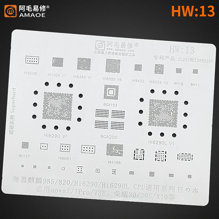 Трафарет для реболлинга Amao HW13 BGA для Huawei Nova 7 Pro SE Glor...