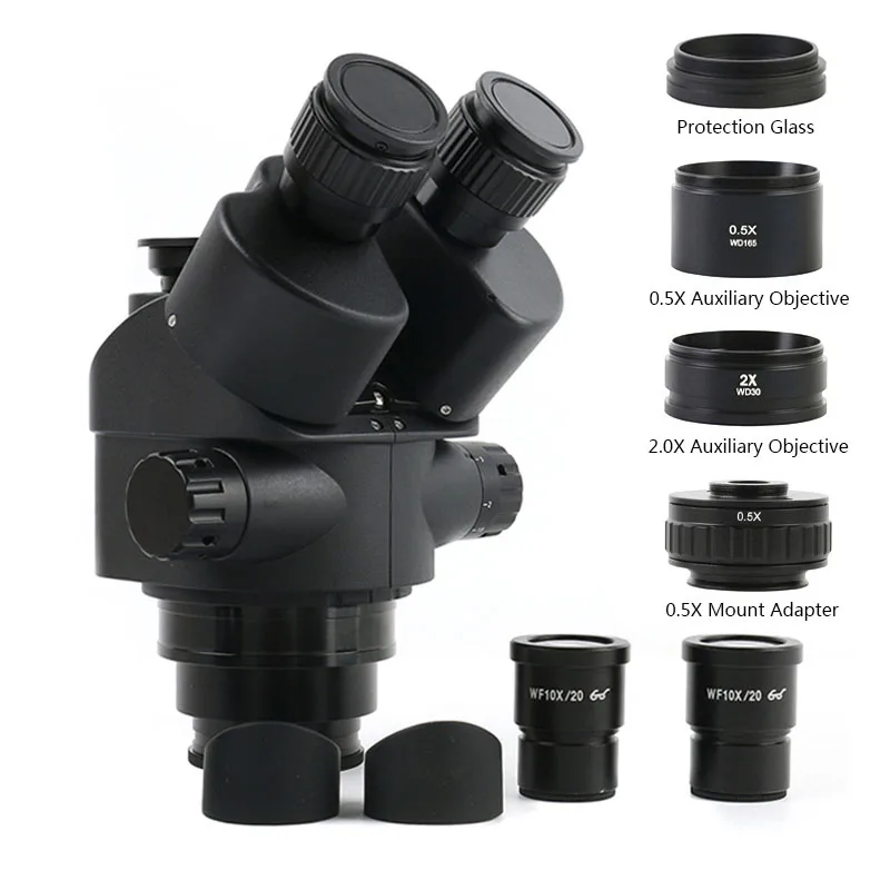 Мультифокальный тринокулярный микроскоп 3,5x-90X зум стерео микроскоп головка 0,5x 2,0x Вспомогательный объектив 0,5x C адаптер крепления