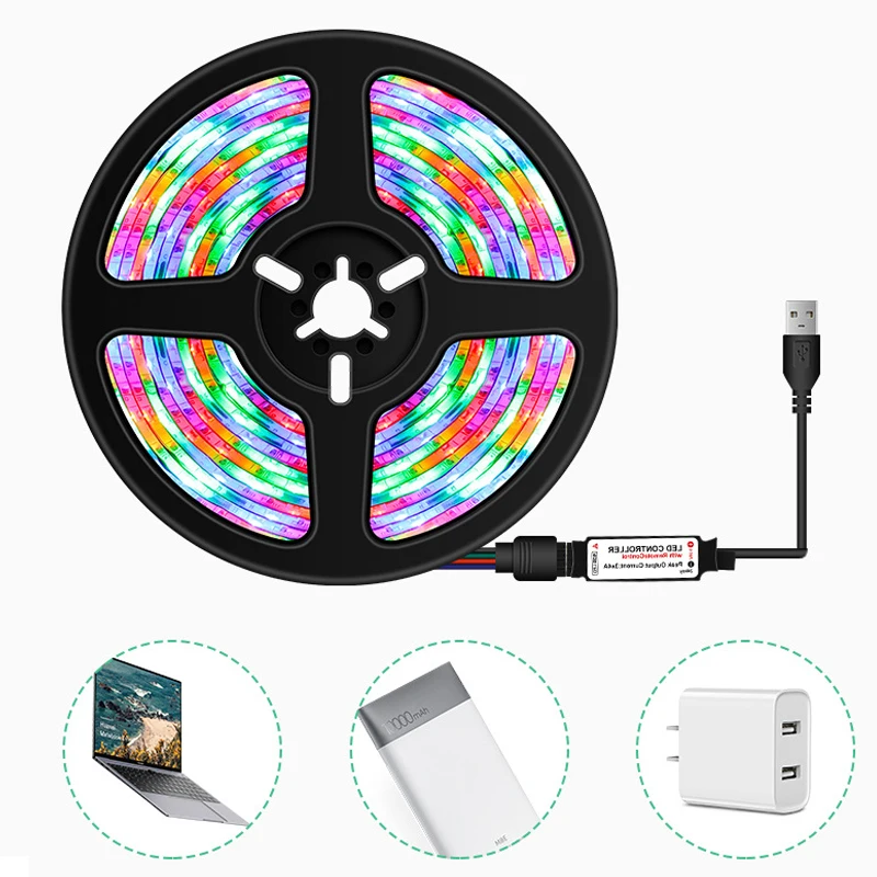 Светодиодная лента RGB с питанием от USB, осветительные приборы с дистанционным управлением, меняющие цвет RGB, подсветка для телевизора, для домашнего декора