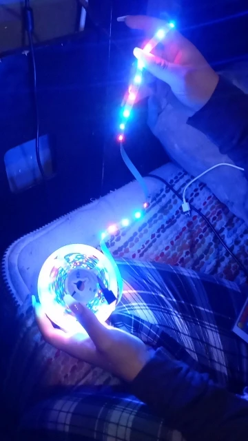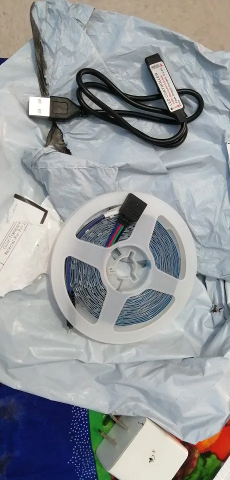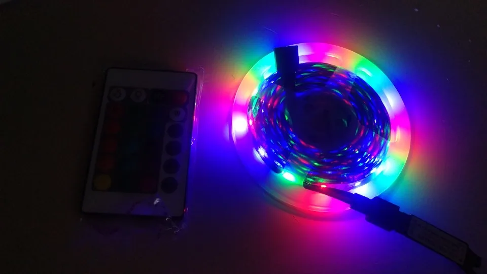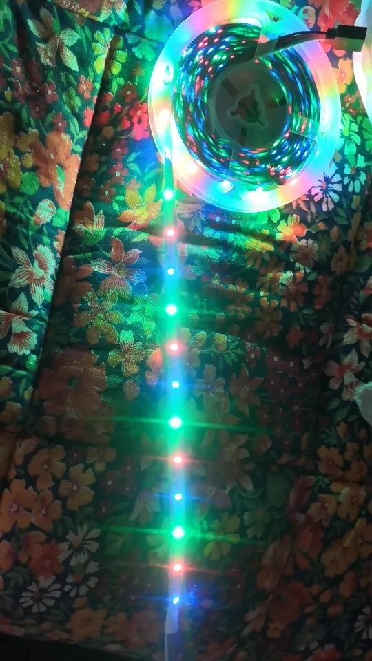 Товар низкого качества. Продавец прислал не тот комплект. В место 1м и адаптера на проводе прислал 5м с пультом управления. Светит слабо. Да это не rgb лента, а лишь разноцветные светодиоды, тоесть один светодиод один цвет.