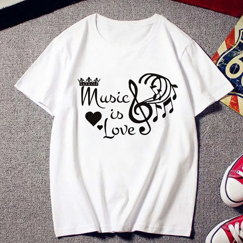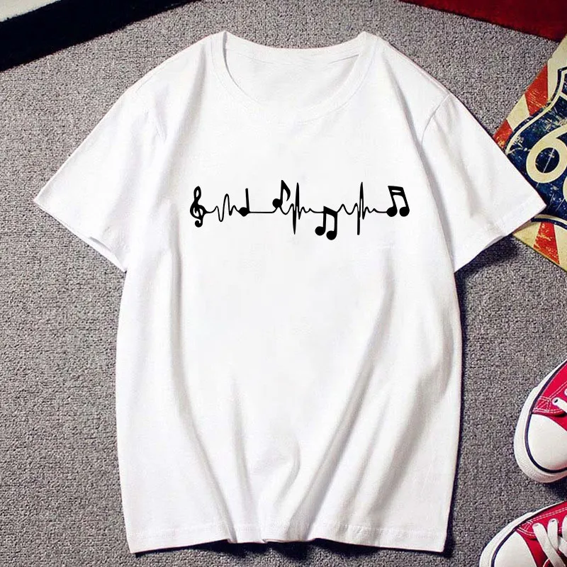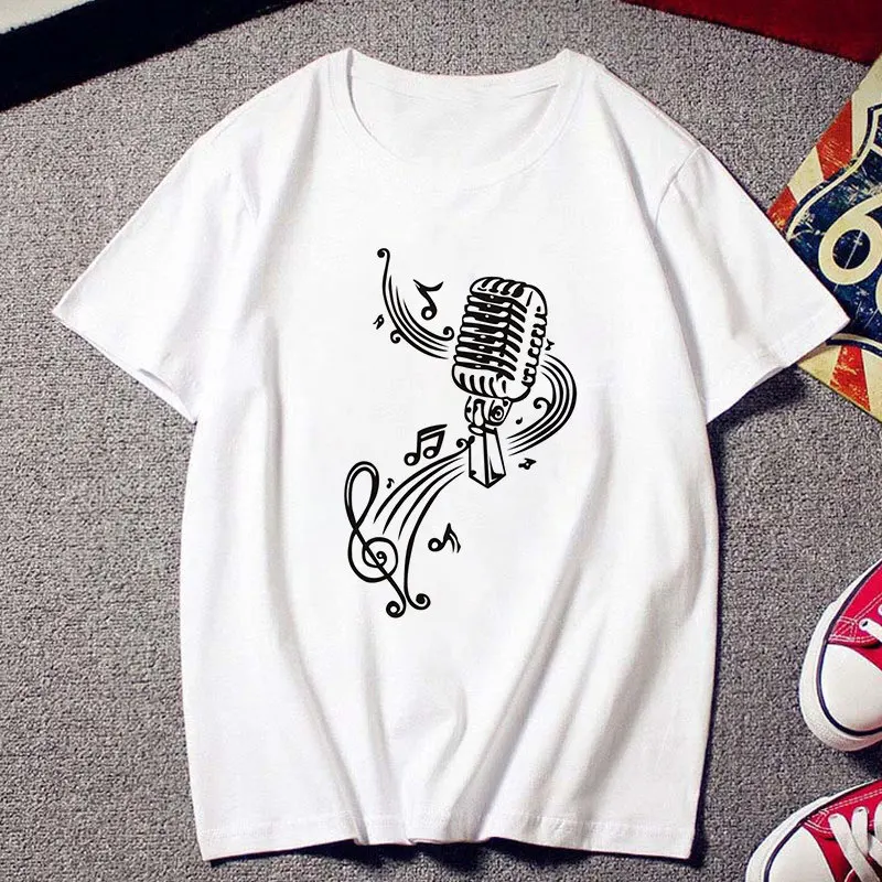 Новая белая футболка в стиле Харадзюку для мужчин и женщин, Модная креативная Футболка с принтом музыкальных нот, Летняя Повседневная рубашка с коротким рукавом для женщин
