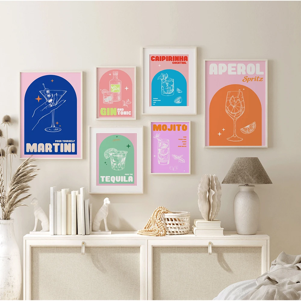 Винтажные картины на холсте ликера, аперлового вина для кухни, деко...