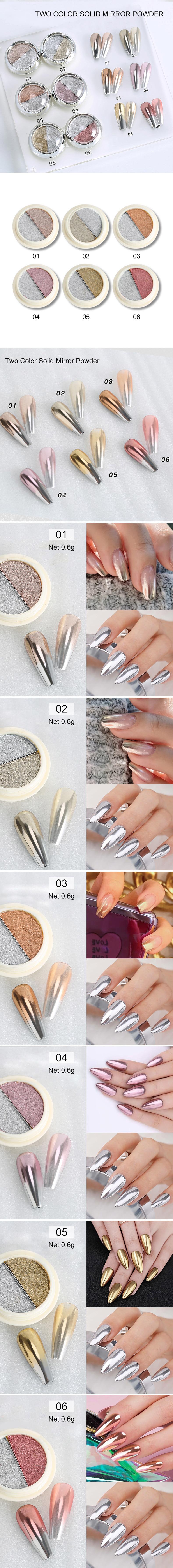 Металлическая зеркальная блестящая пудра для ногтей двух цветов, ро...