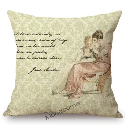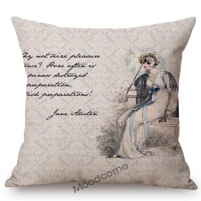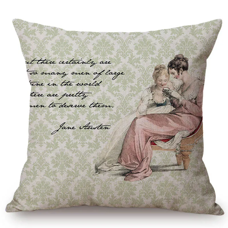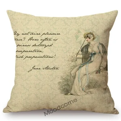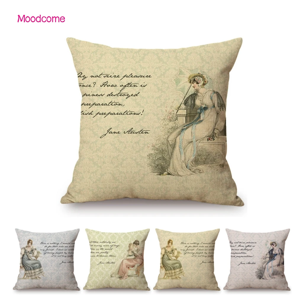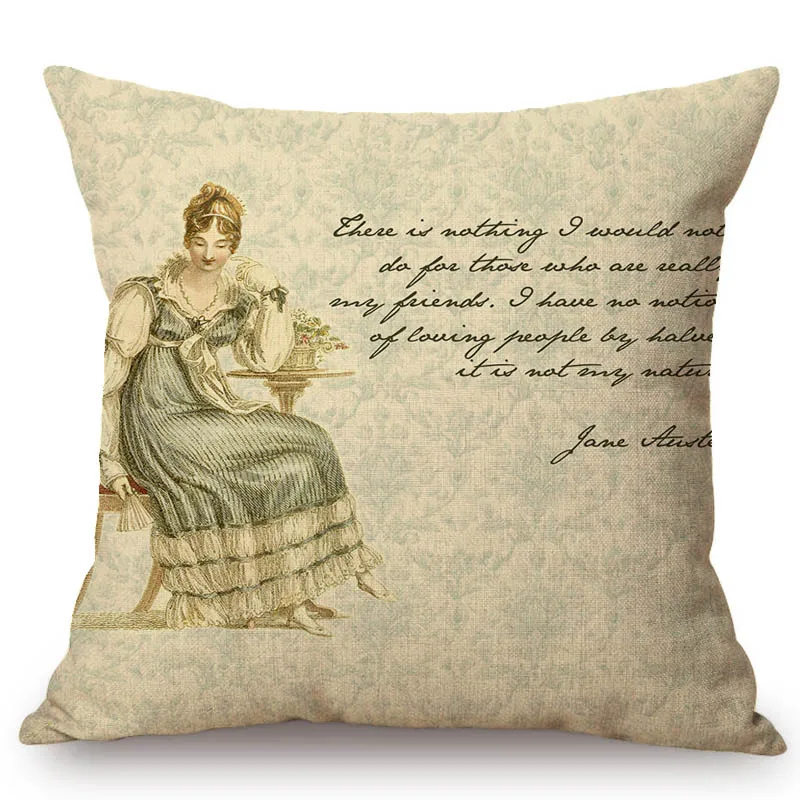 Наволочка для диванной подушки, из хлопка и льна, с изображением винтажной герцогини Джейн Остин