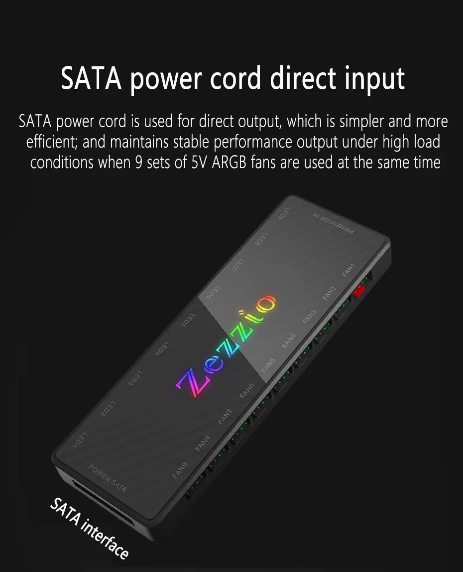 Zezzio от 1 года до 9 концентратор многоходовой сплиттер 5V3PIN цветная (RGB) интерфейс SATA чехол вентилятор Hub адаптер PWM ARGB Addressble вентилятор Мощность