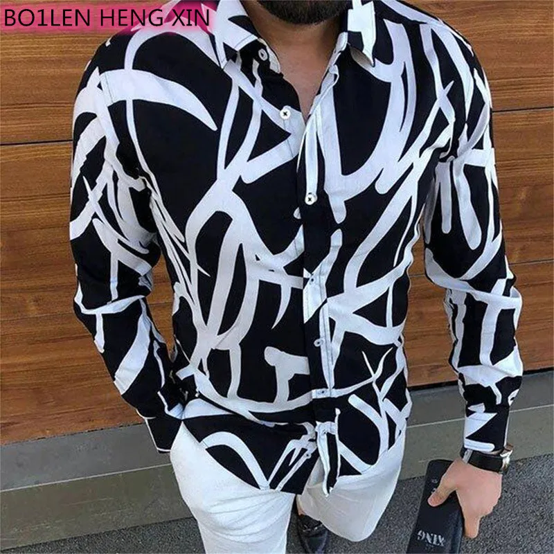 Осенняя Повседневная рубашка с цветочным принтом для мужчин 2021 Весенняя мода с отложным воротником на пуговицах Топы Мужской размера плюс рубашки уличная 3XL