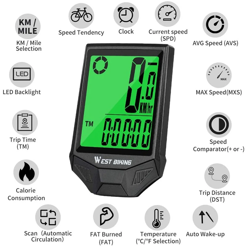 WEST BIKING беспроводной Велосипедный компьютер Водонепроницаемый одометр спидометра, поддержка смарт-датчик ЖК-дисплей с подсветкой
