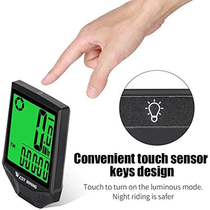 WEST BIKING Беспроводной велокомпьютер Водонепроницаемый спидометр одометр, Поддержка Смарт Сенсор ЖК-дисплей Подсветка Дисплей