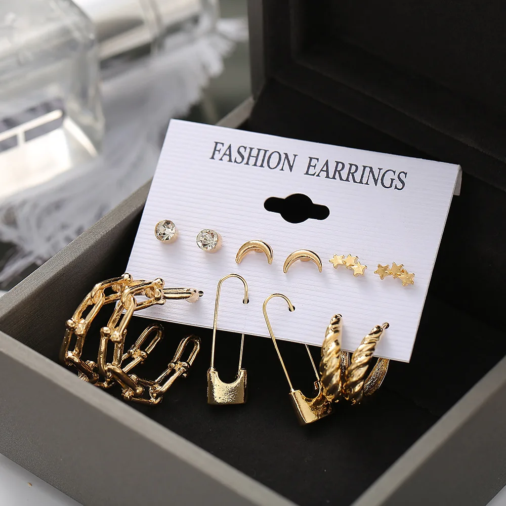 Модные Винтажные большие смешанные Комплект сережек для женщин геом...